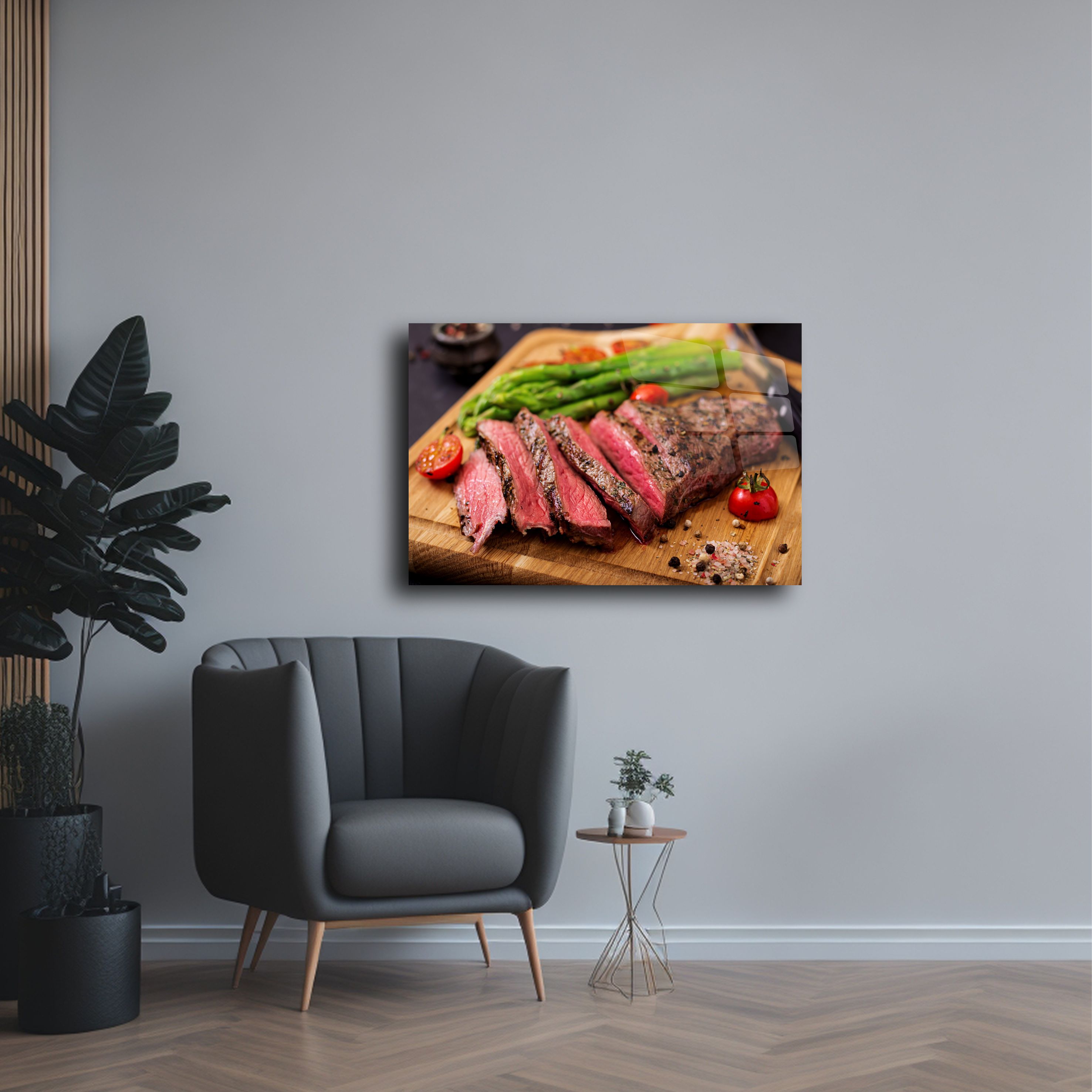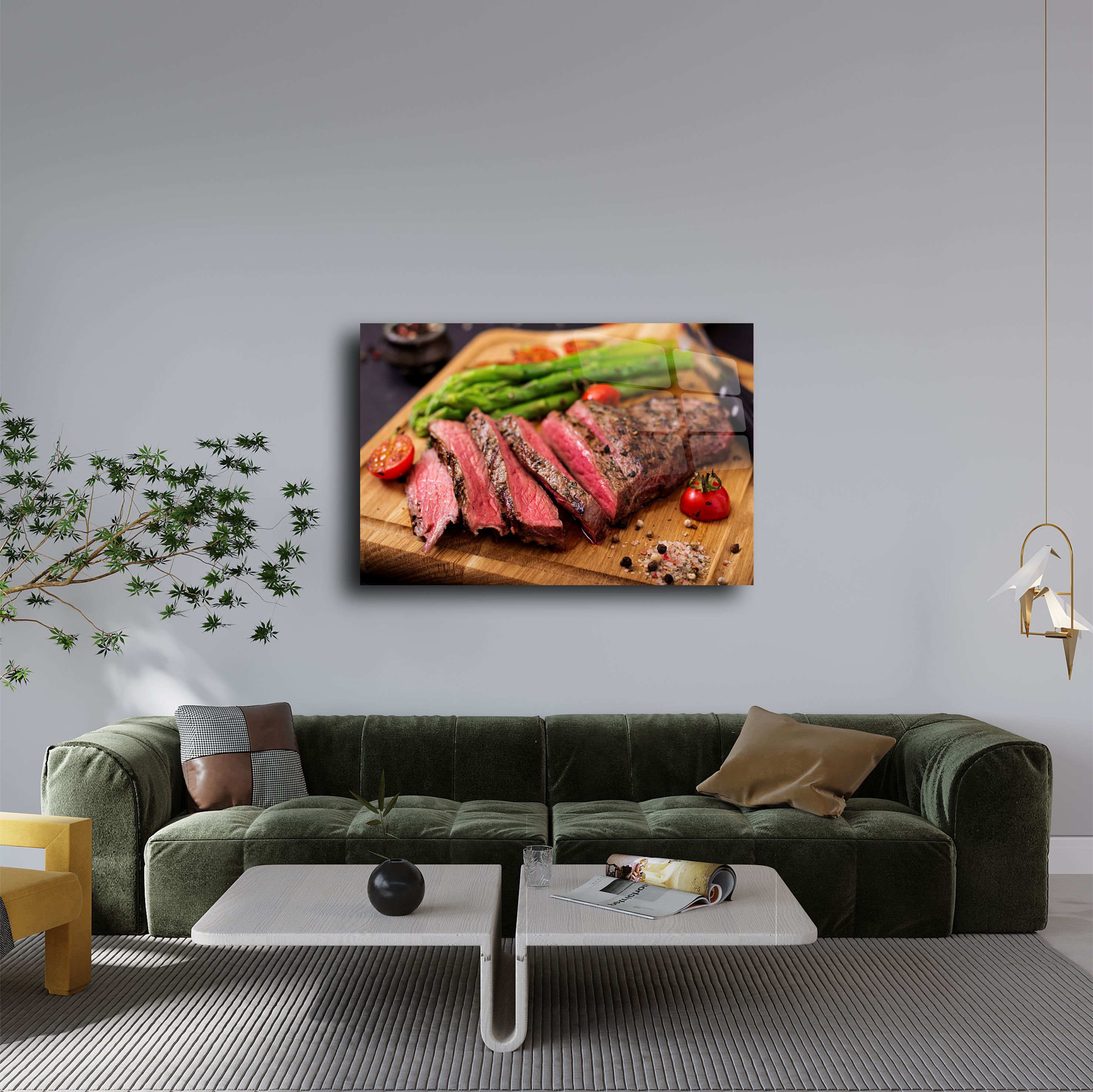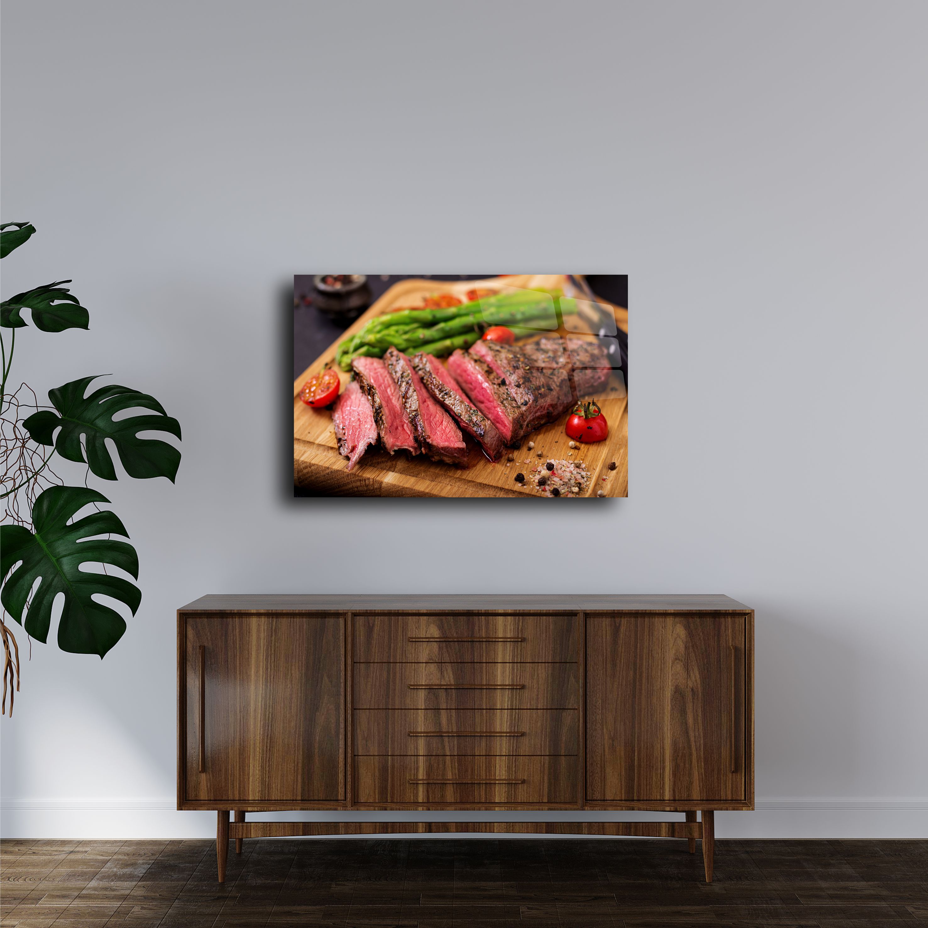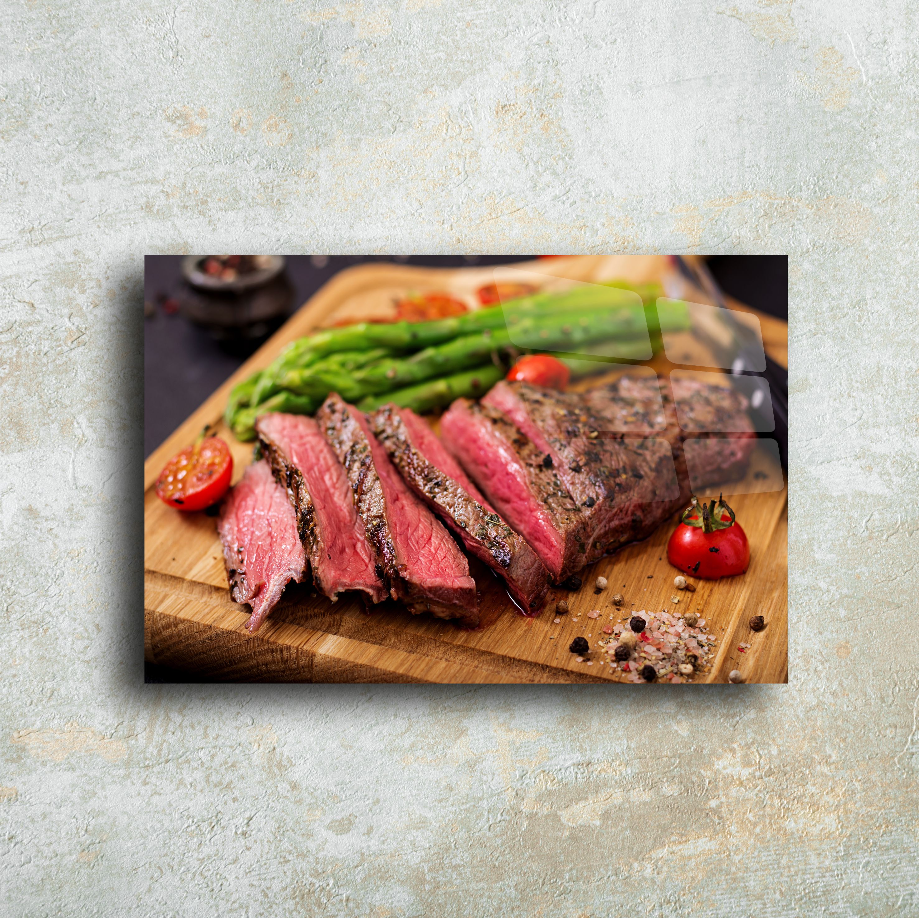 Evinizin mutfak dekorasyonunu modern bir dokunuşla tamamlayın! Asparagüs ve dilimlenmiş et temalı bu cam tablo, 4mm temperli cam üzerine UV baskı teknolojisiyle üretilmiştir ve şık bir görünüm sunar. Canlı renkleri ve detaylı tasarımıyla mutfaklar, restoranlar veya kafe duvarları için mükemmel bir dekoratif seçenektir. Kolay montaj için gerekli tüm aparatlarla birlikte gönderilir.