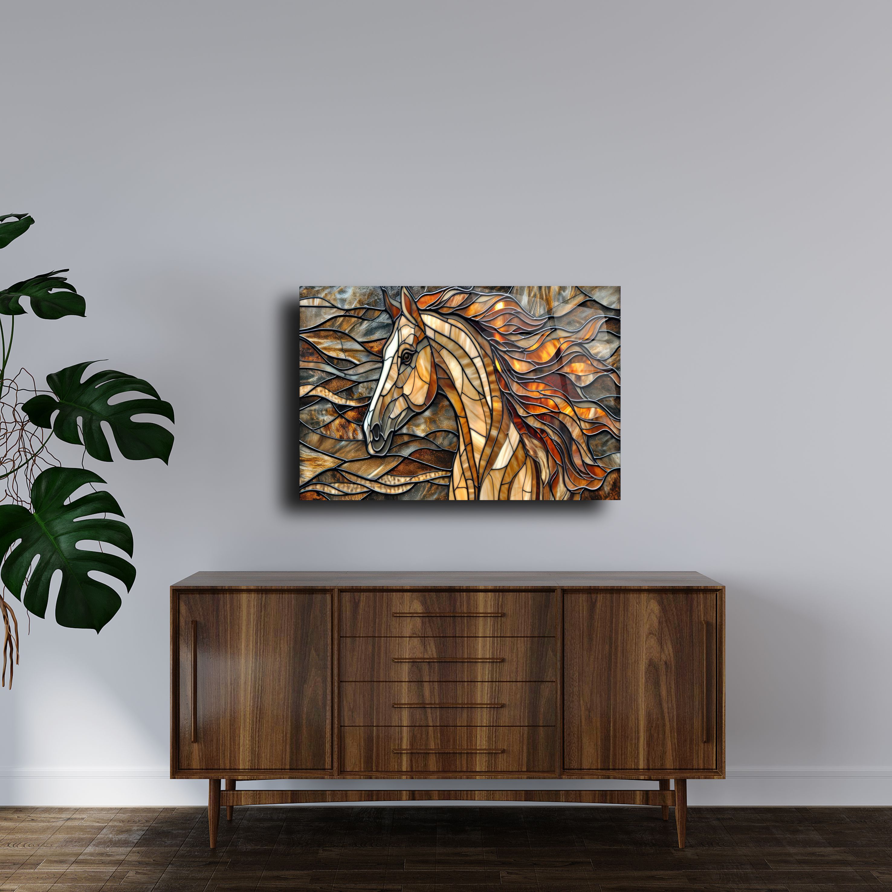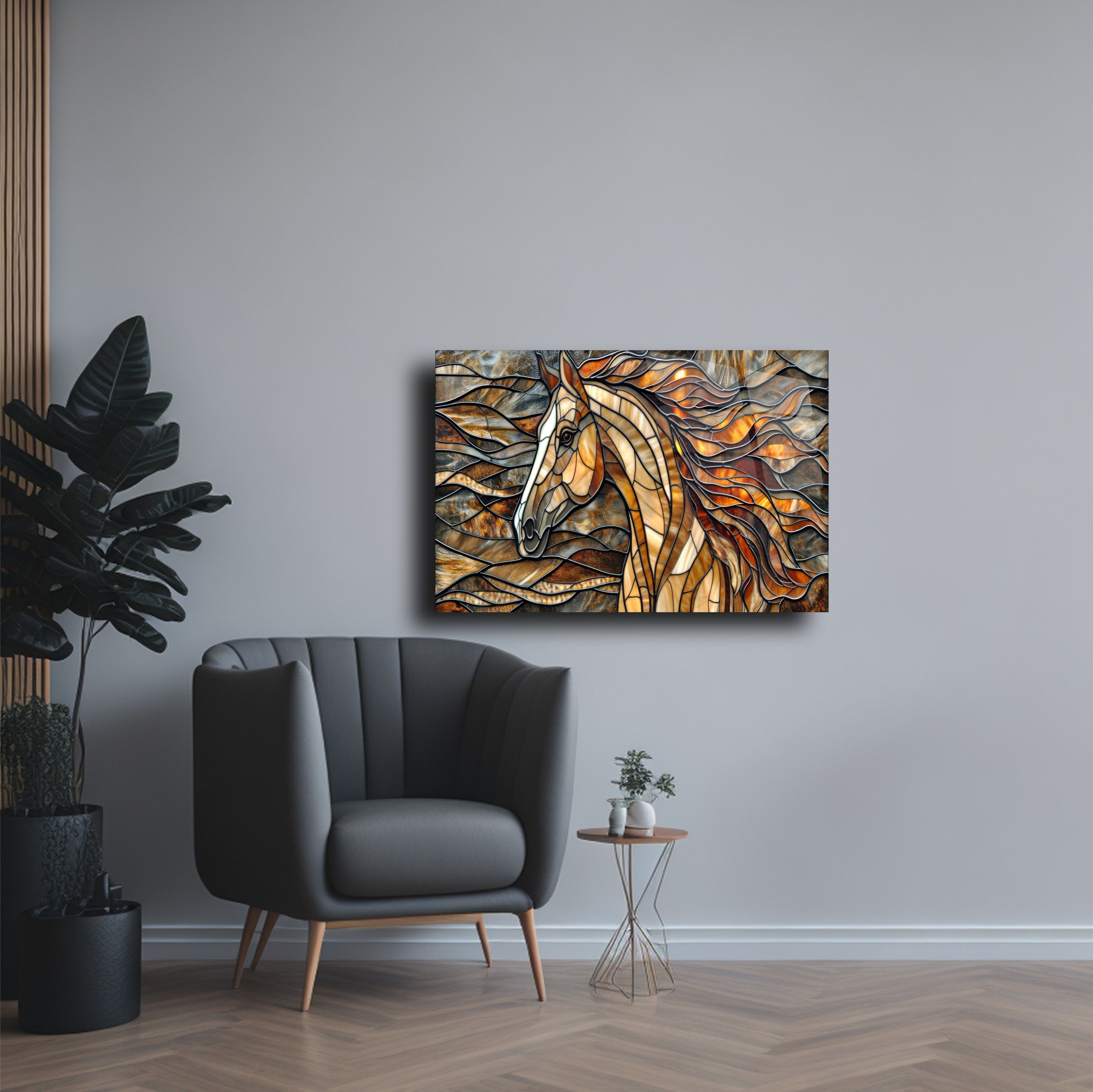 Doğanın gücünü ve ateşin tutkusunu bir araya getiren bu eşsiz mozaik cam tablo, detaylı işçiliğiyle dikkat çeker. At figürünün dinamik çizgileri, ateş tonlarındaki cam mozaiklerle birleştirilerek eşsiz bir görsel şölen yaratılmıştır. Her detay, el işçiliğiyle özenle işlenmiş olup, yüksek kaliteli malzemeler kullanılarak dayanıklılık ve estetik bir arada sunulmuştur.