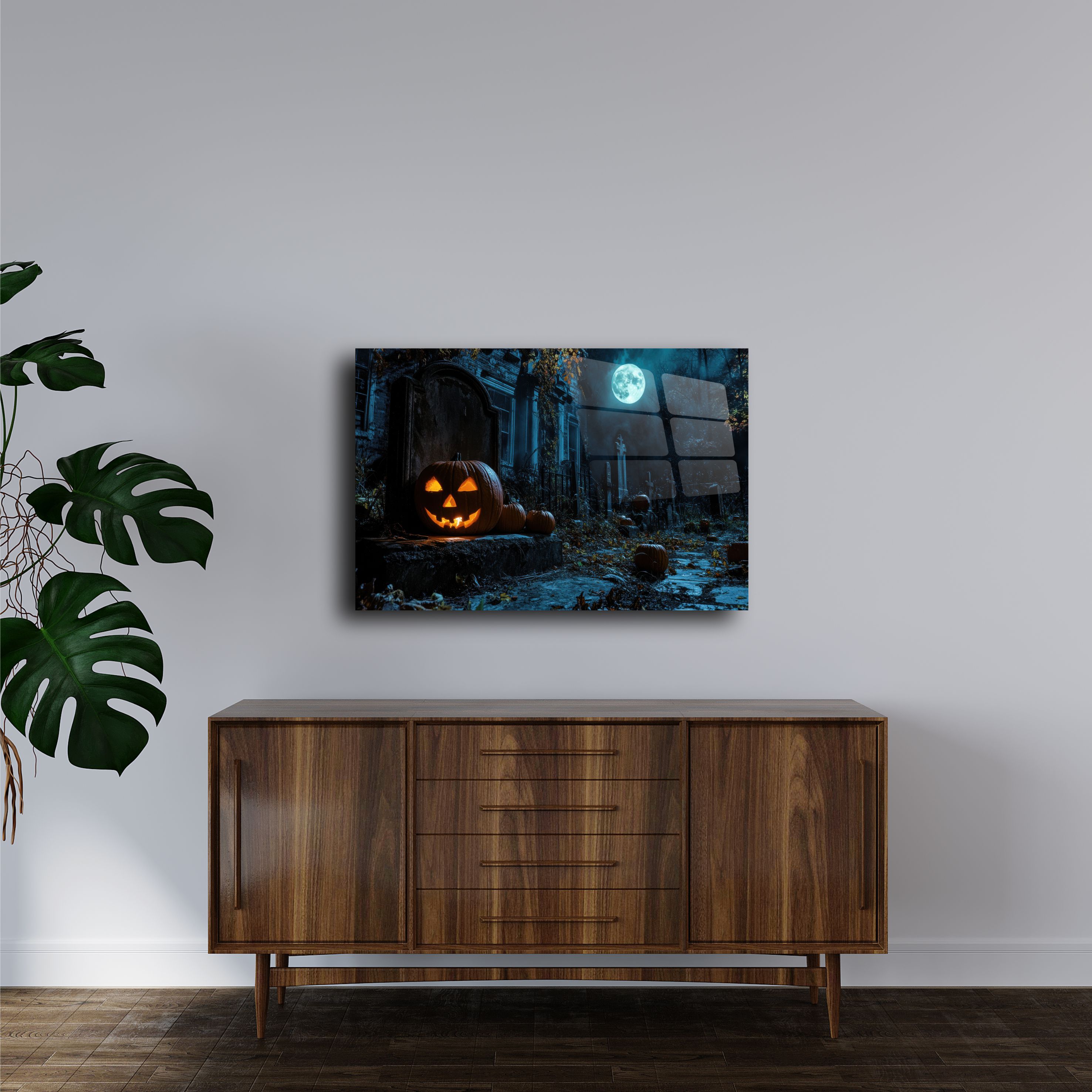Ev dekorasyonunda benzersiz bir atmosfer yaratmak isteyenler için özel olarak tasarlanan bu cam tablo, Cadılar Bayramı'nın büyüleyici ve mistik havasını yaşam alanınıza taşır. 4 mm temperli cam üzerine basılan yüksek çözünürlüklü grafikler, detaylardaki keskinliği ve renklerin canlılığını gözler önüne seriyor. Balkabağı oyukları ve ay ışığı detaylarıyla dolu bu tasarım, her türden dekorasyon tarzına uyum sağlar.