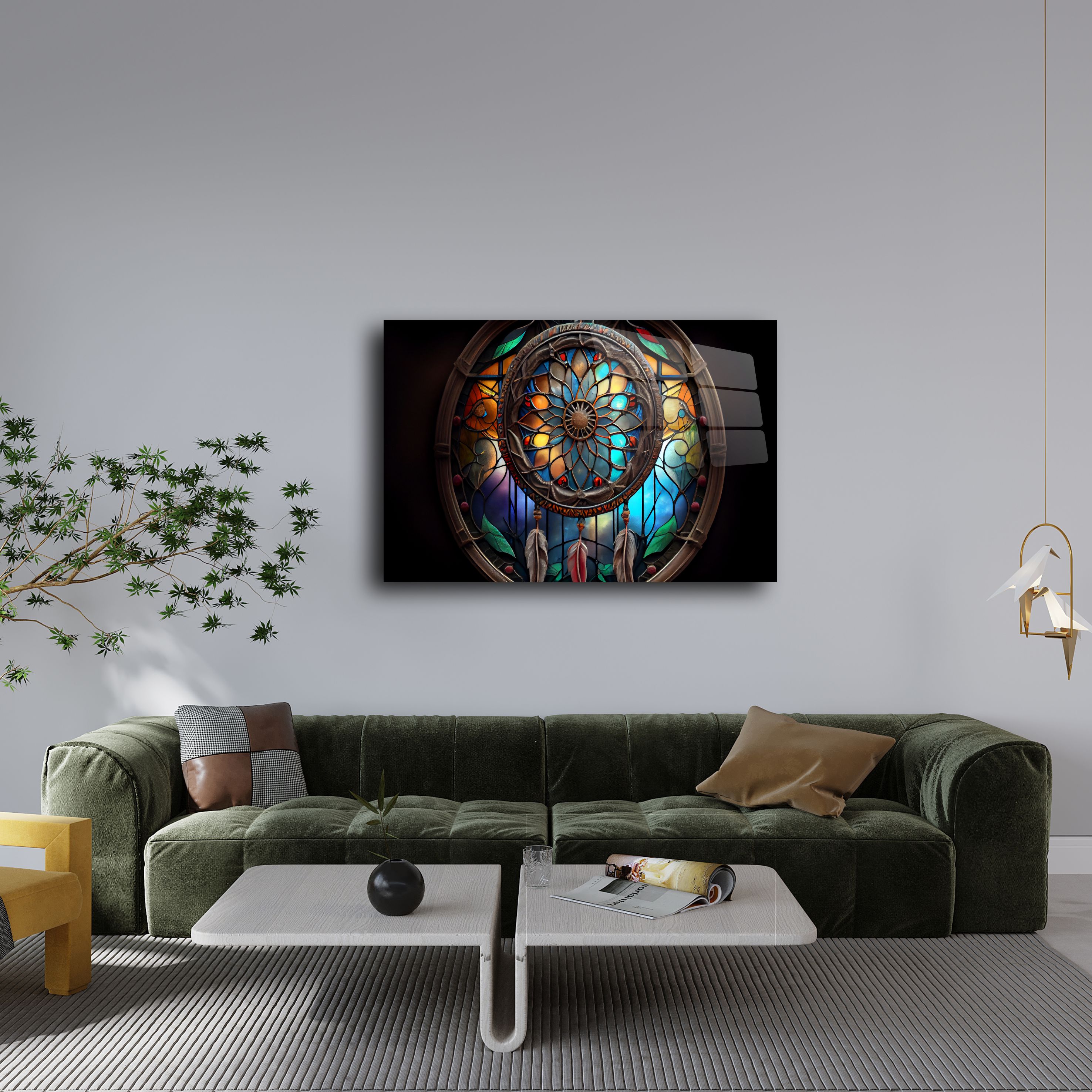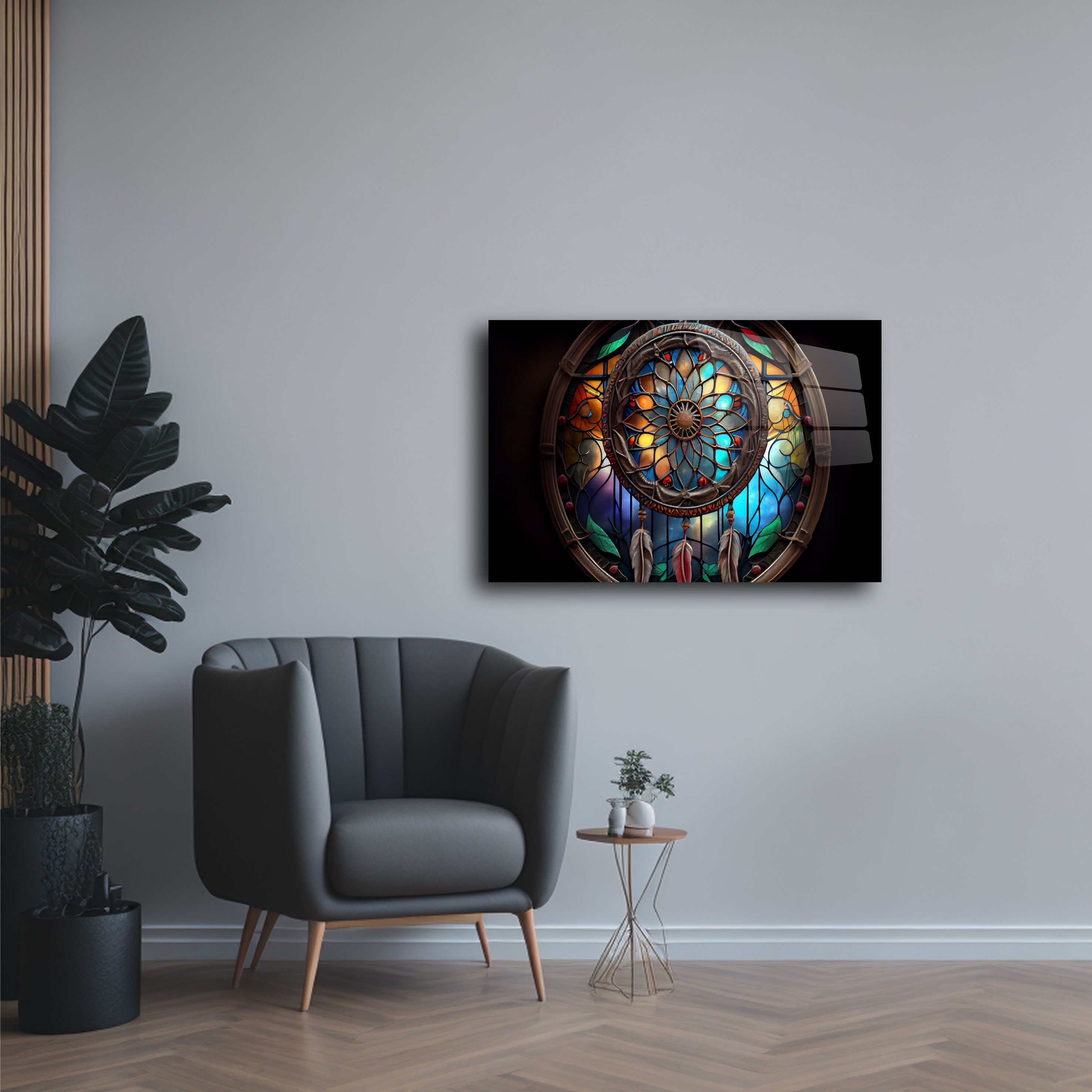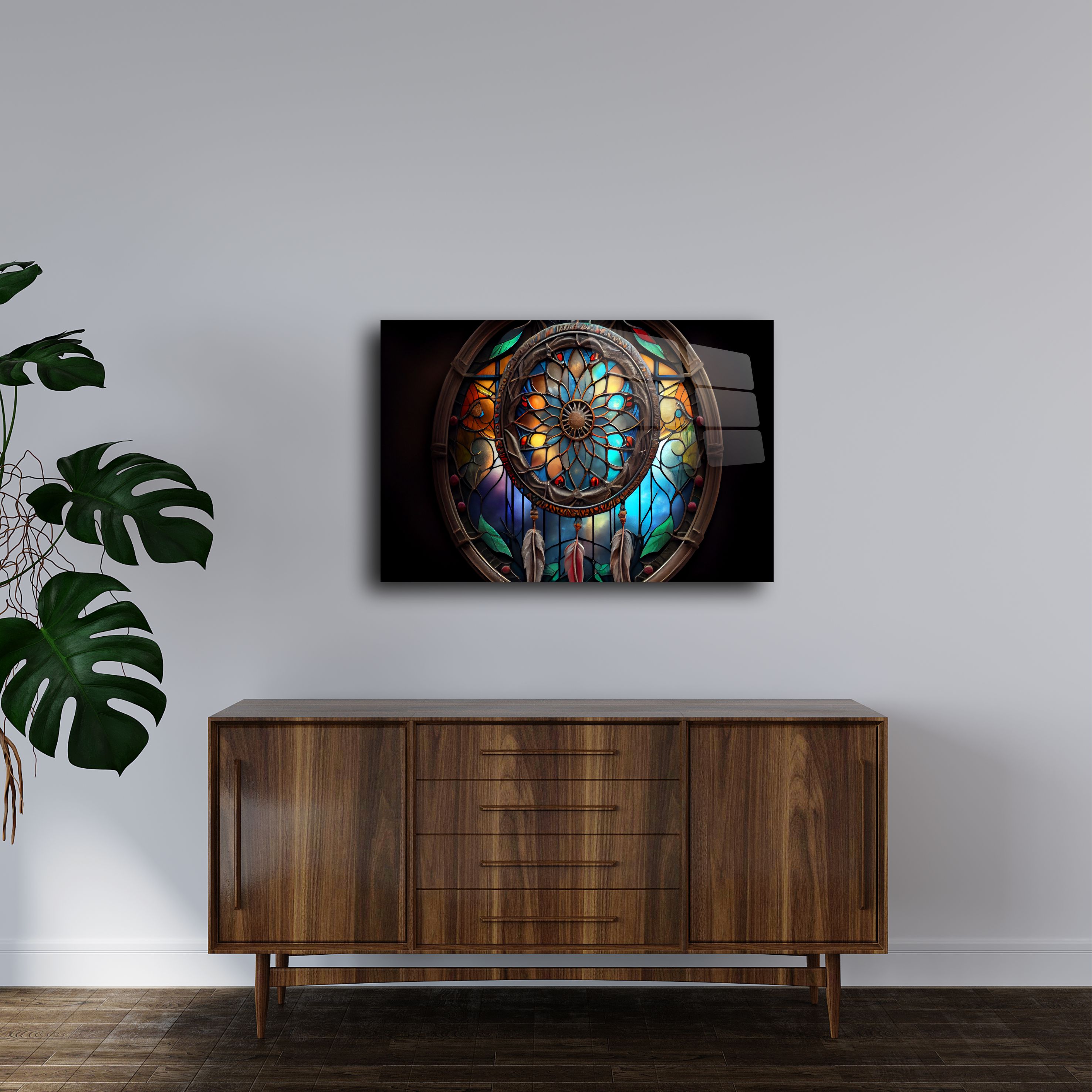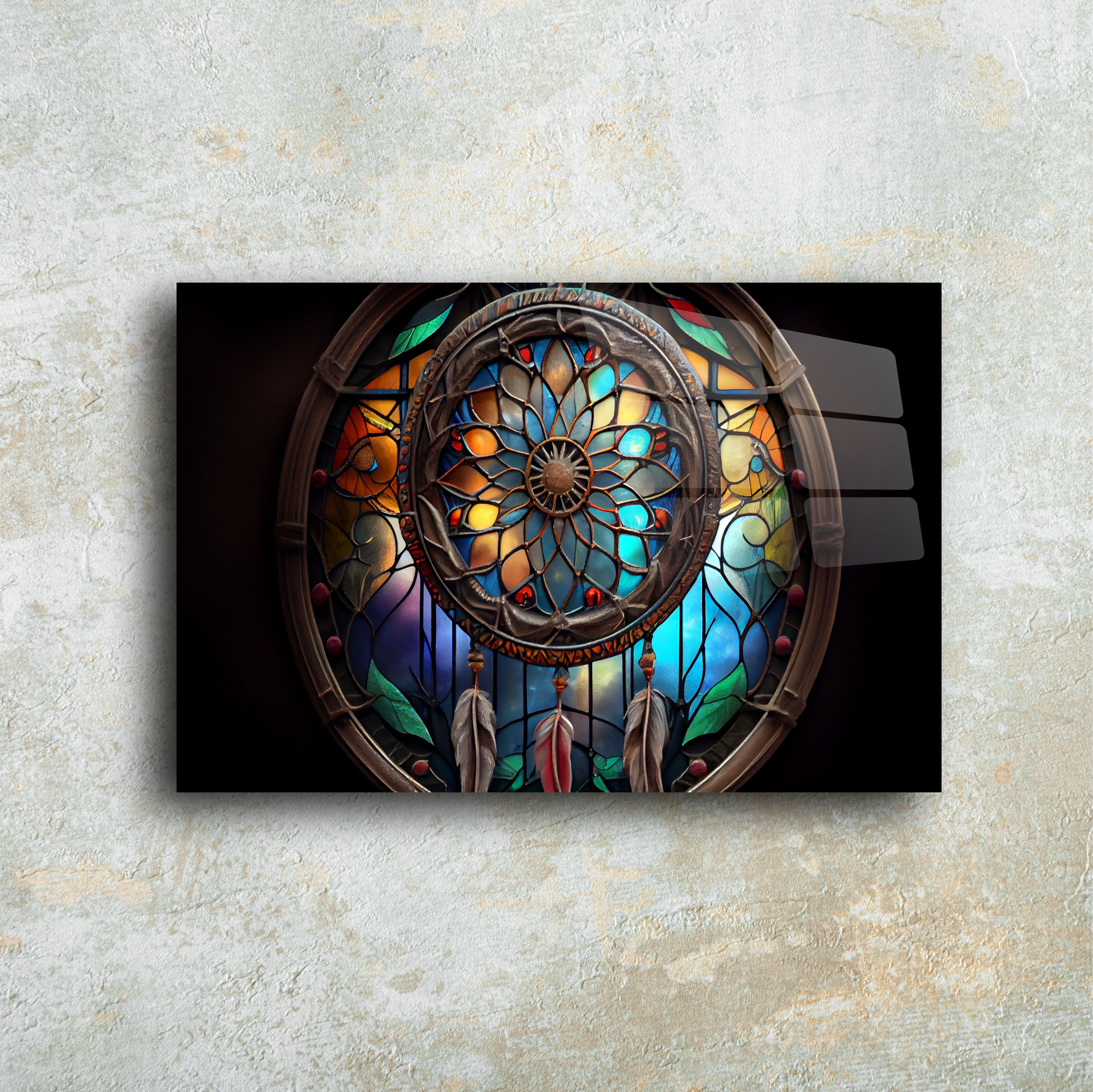 Hayal dünyasını modern bir dokunuşla yaşam alanlarınıza taşımaya hazır olun! Bu eşsiz dreamcatcher temalı cam tablo, renklerin ve ışığın büyüleyici dansını evinize getiriyor. Vitray etkili tasarımıyla, yaşam alanlarınızı sanat galerisi gibi hissettirecek bir dekorasyon öğesi arıyorsanız, doğru yerdesiniz.