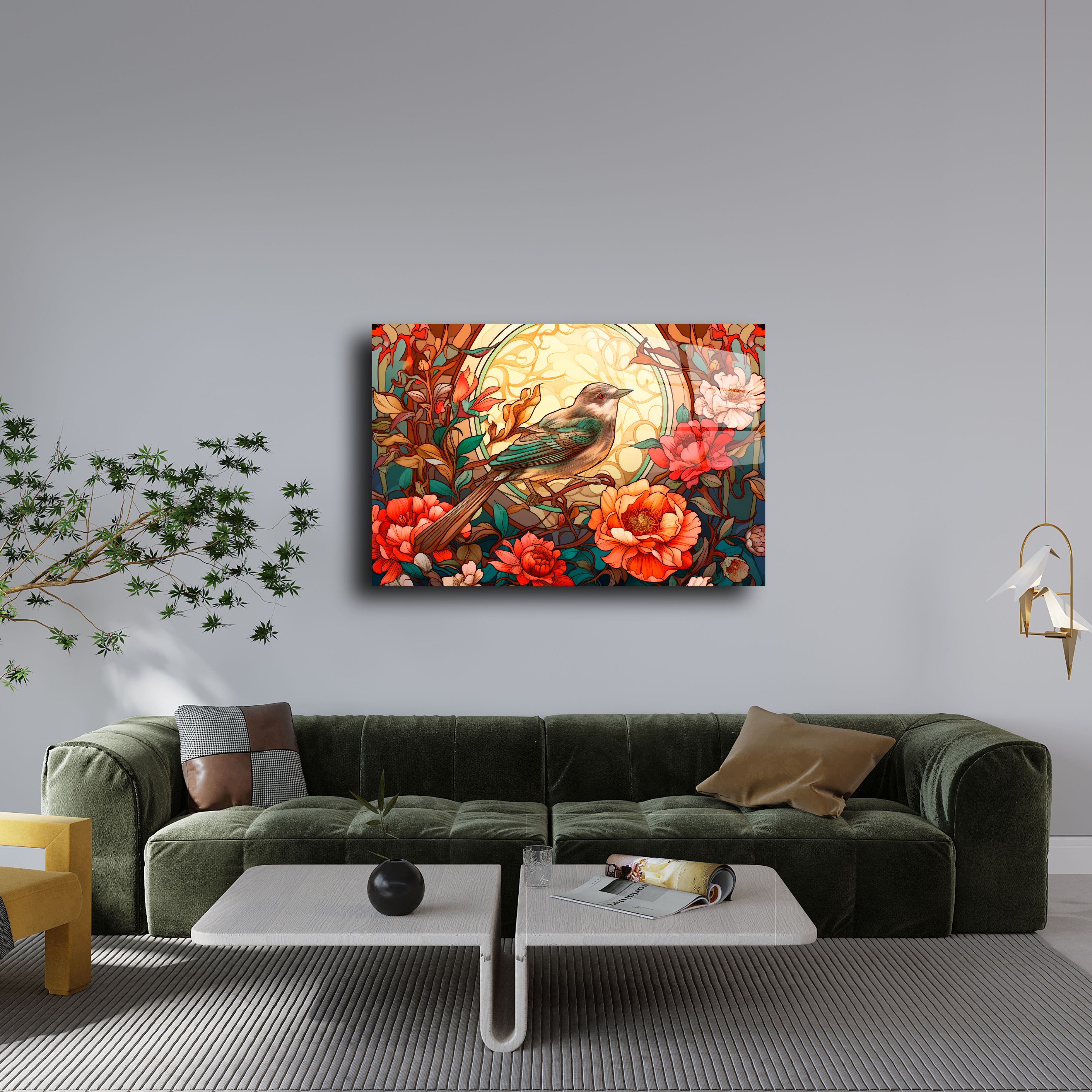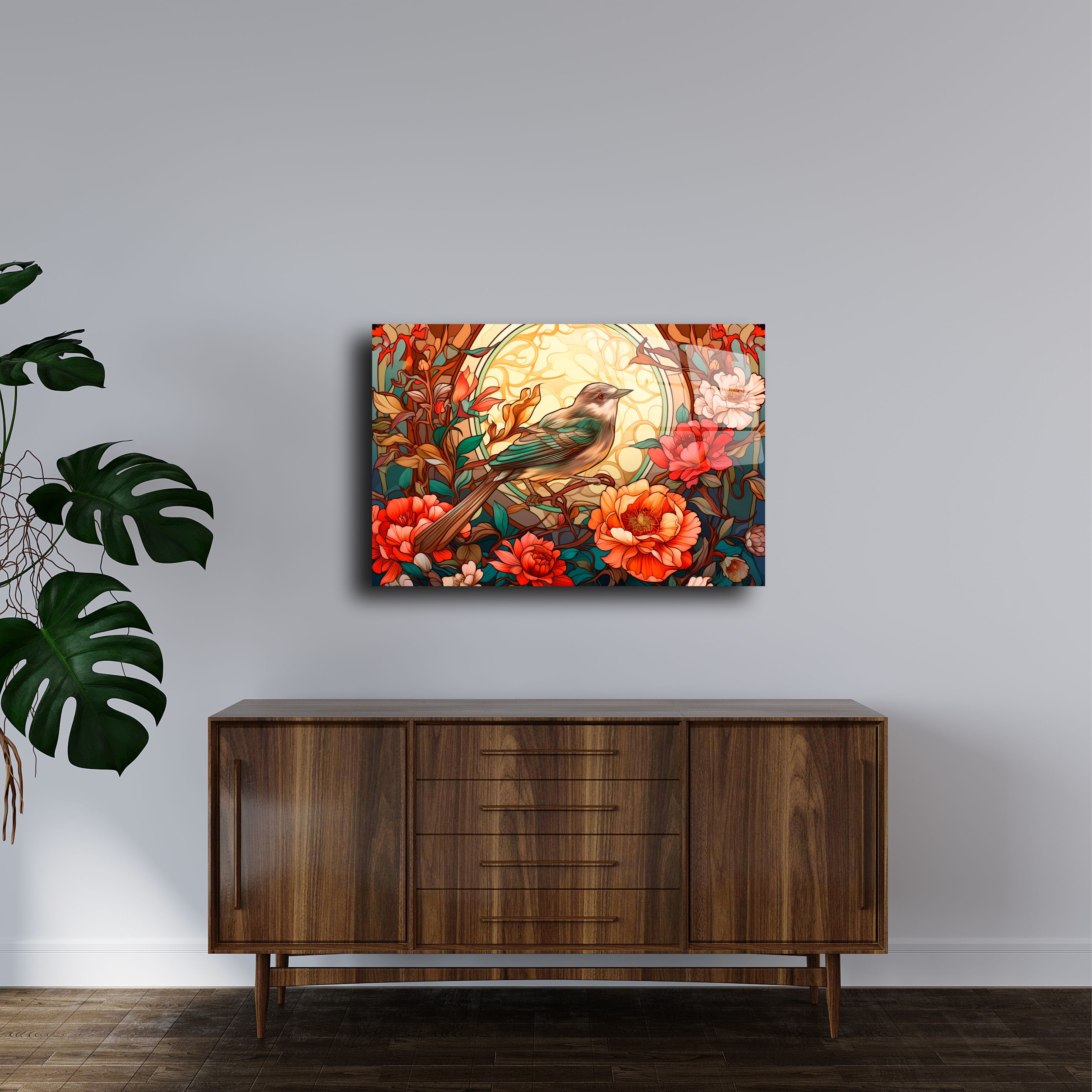Bu zarif cam tablo, doğanın en güzel renklerini ve desenlerini iç mekanlarınıza taşır. Her bir detay, el işçiliği ve modern tasarım anlayışıyla birleştirilerek üretilmiştir. Camın doğal parlaklığı ve çiçek desenlerinin sanatsal dokunuşu, duvarlarınızı şık ve sofistike bir hale getirir.