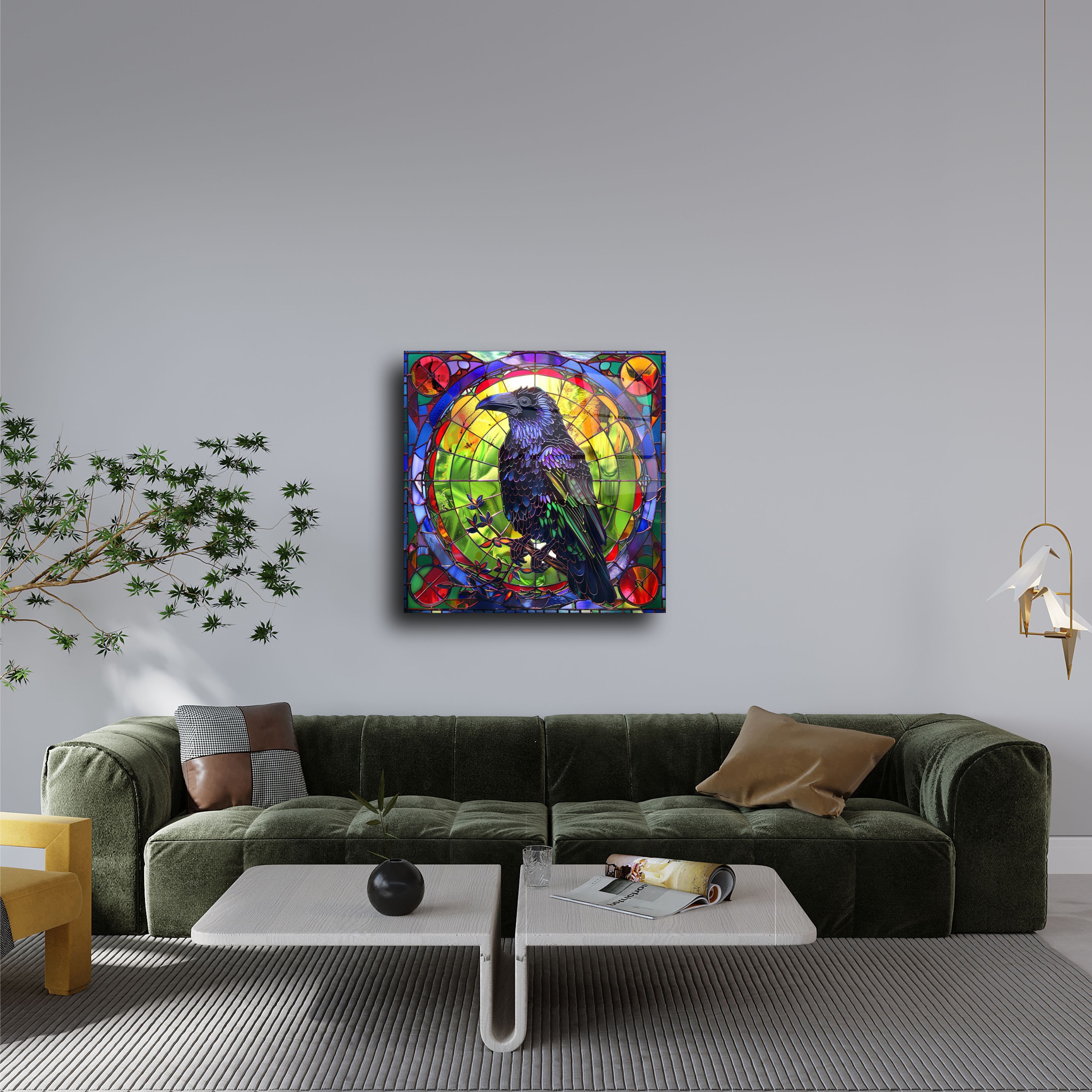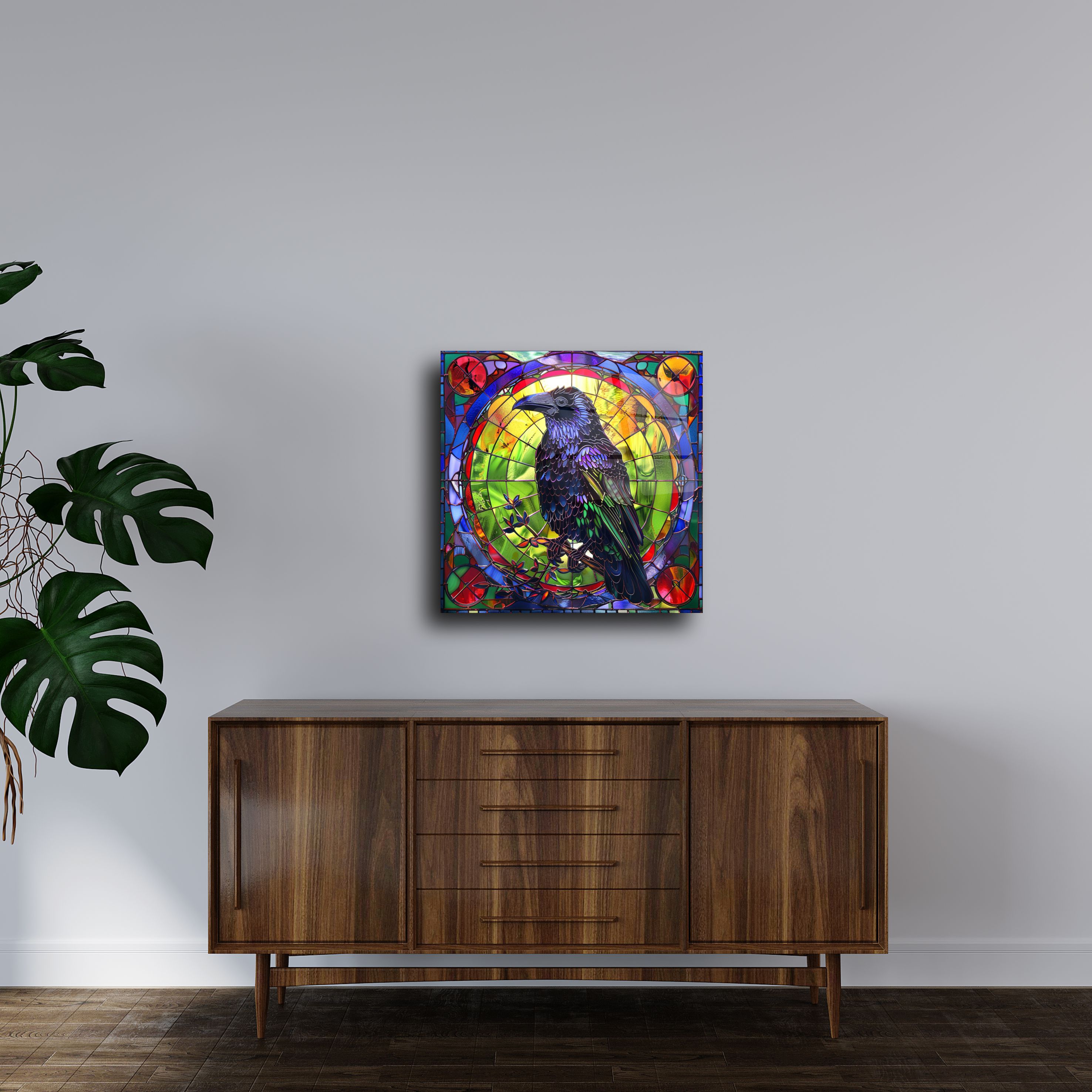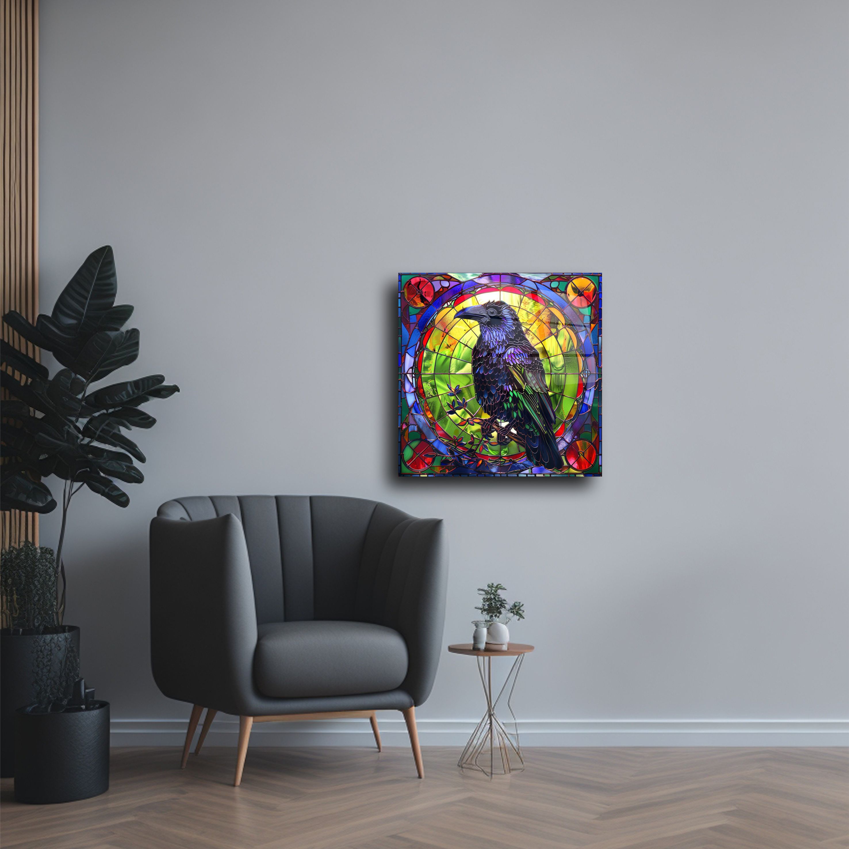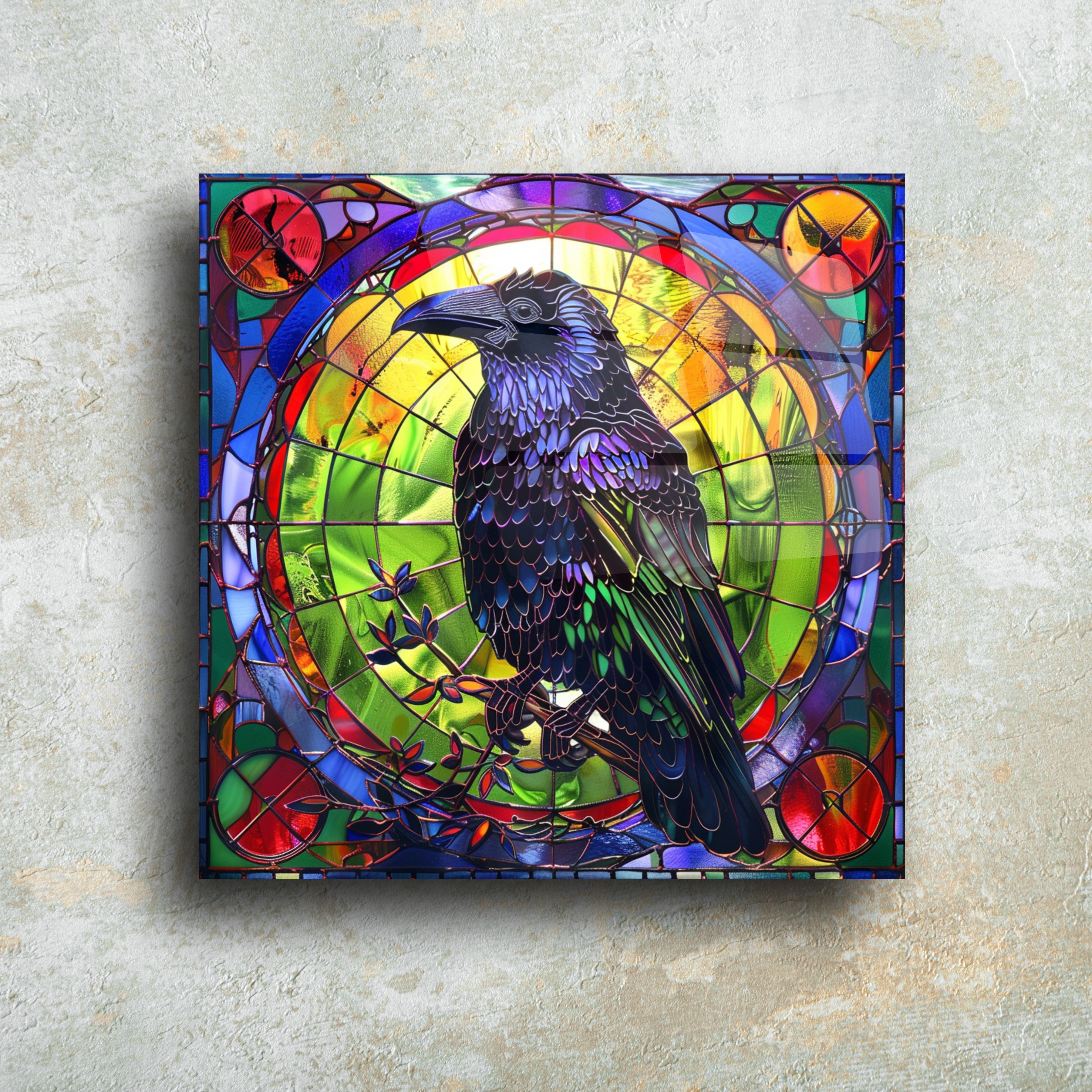 Her detayında özenle işlenmiş kuzgun figürü, çevresindeki canlı renkli vitray desenlerle tamamlanarak, doğanın ve sanatın uyumunu simgeler. Minimalist ya da klasik dekorasyon stillerine kolayca entegre edilebilir. İster oturma odanızda, ister yatak odanızda ya da ofisinizde bu göz alıcı sanat eserine yer verin.