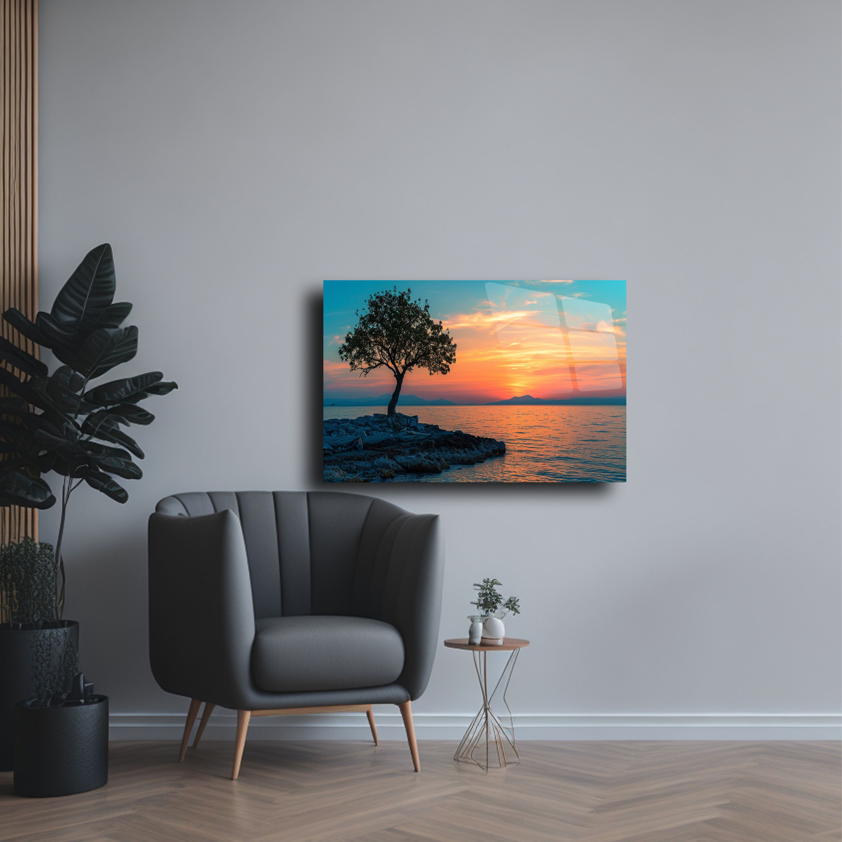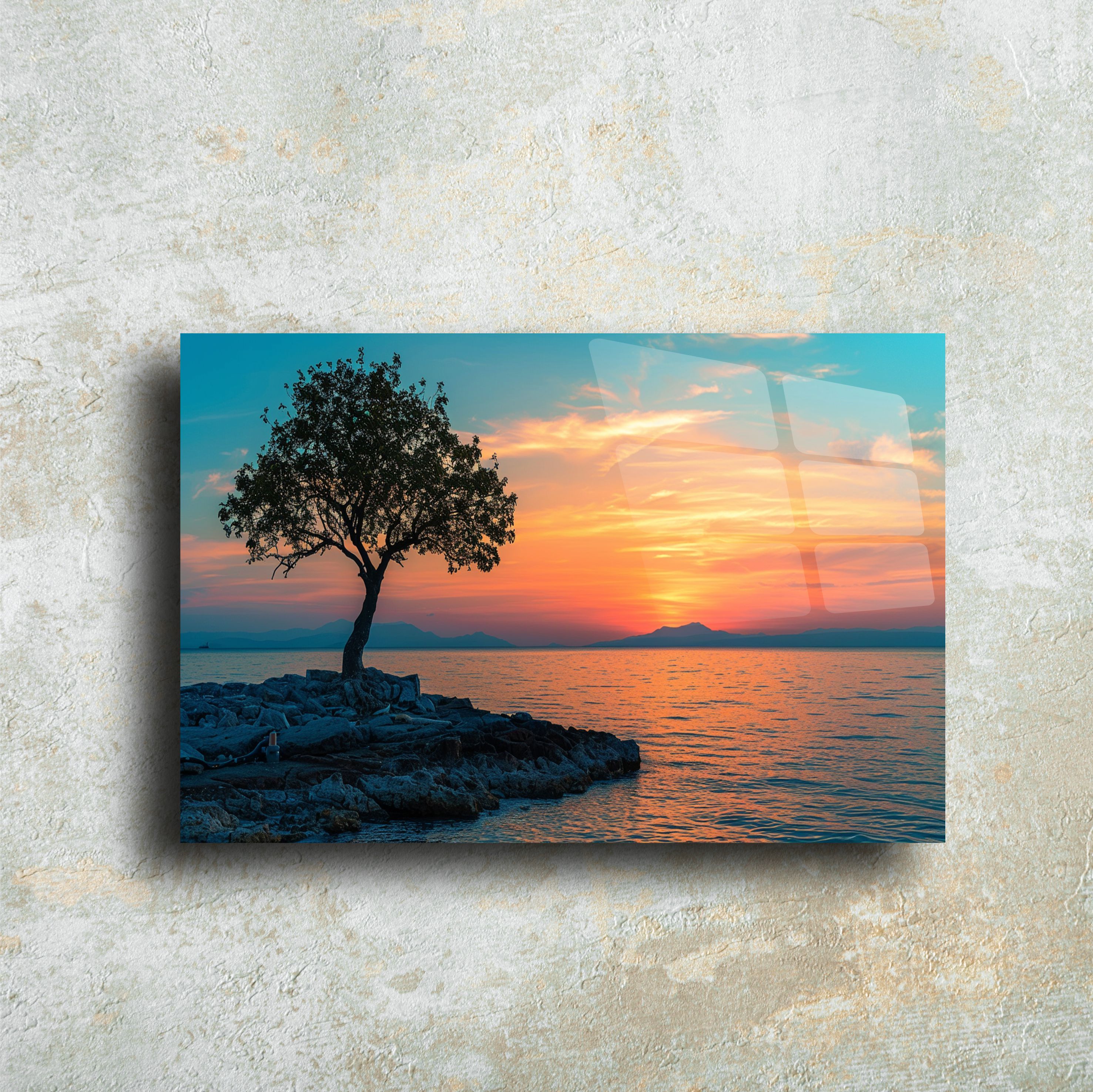 Doğanın güzelliklerini yansıtan bu göl ve gün batımı temalı cam tablo, dekorasyonunuza zarif ve sakinleştirici bir hava katar. 4 mm temperli cam üzerine UV baskı teknolojisiyle üretilmiş olup dayanıklılığı ve estetik görünümüyle her mekanda fark yaratır.