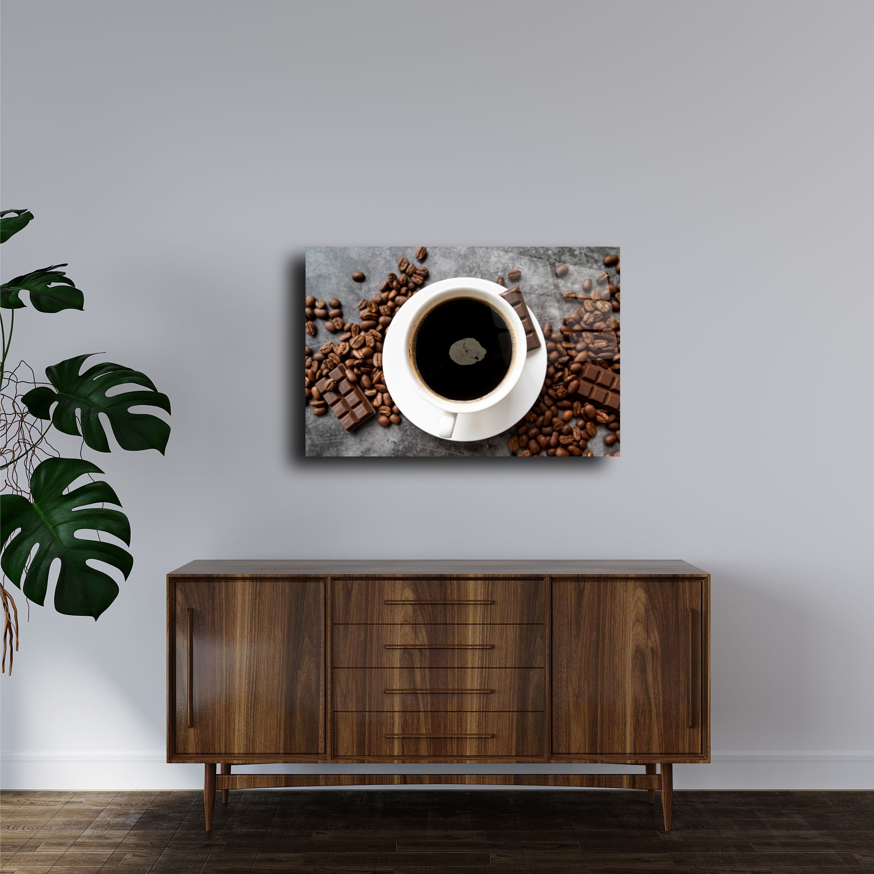 Bu modern kahve ve çikolata temalı cam tablo, iç mekanlarınıza sıcak bir dokunuş kazandırırken dekorasyonunuzu modernleştirir. Şimdi sipariş verin ve tarzınızı yansıtan bu özel tasarımı evinize taşıyın!