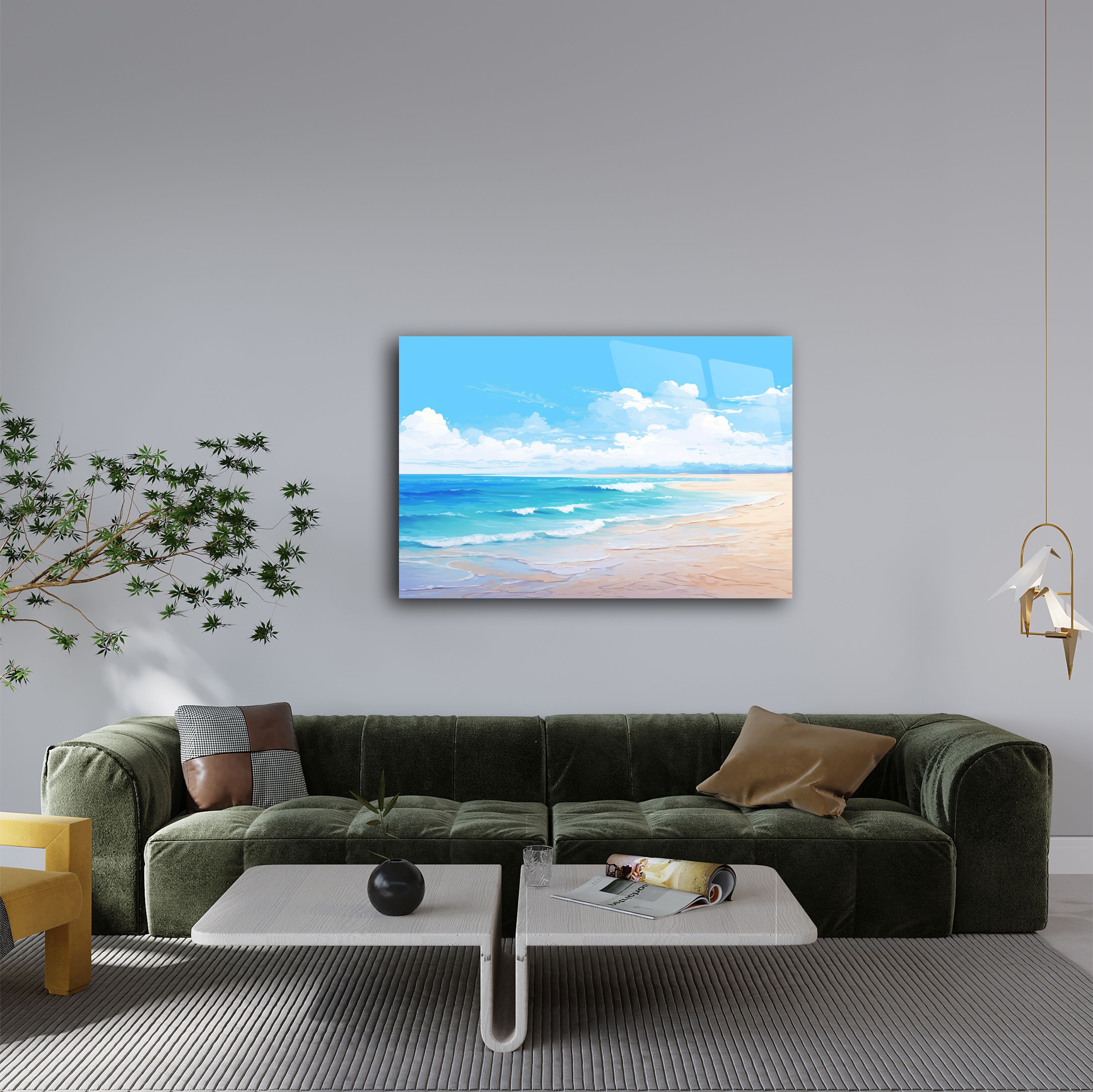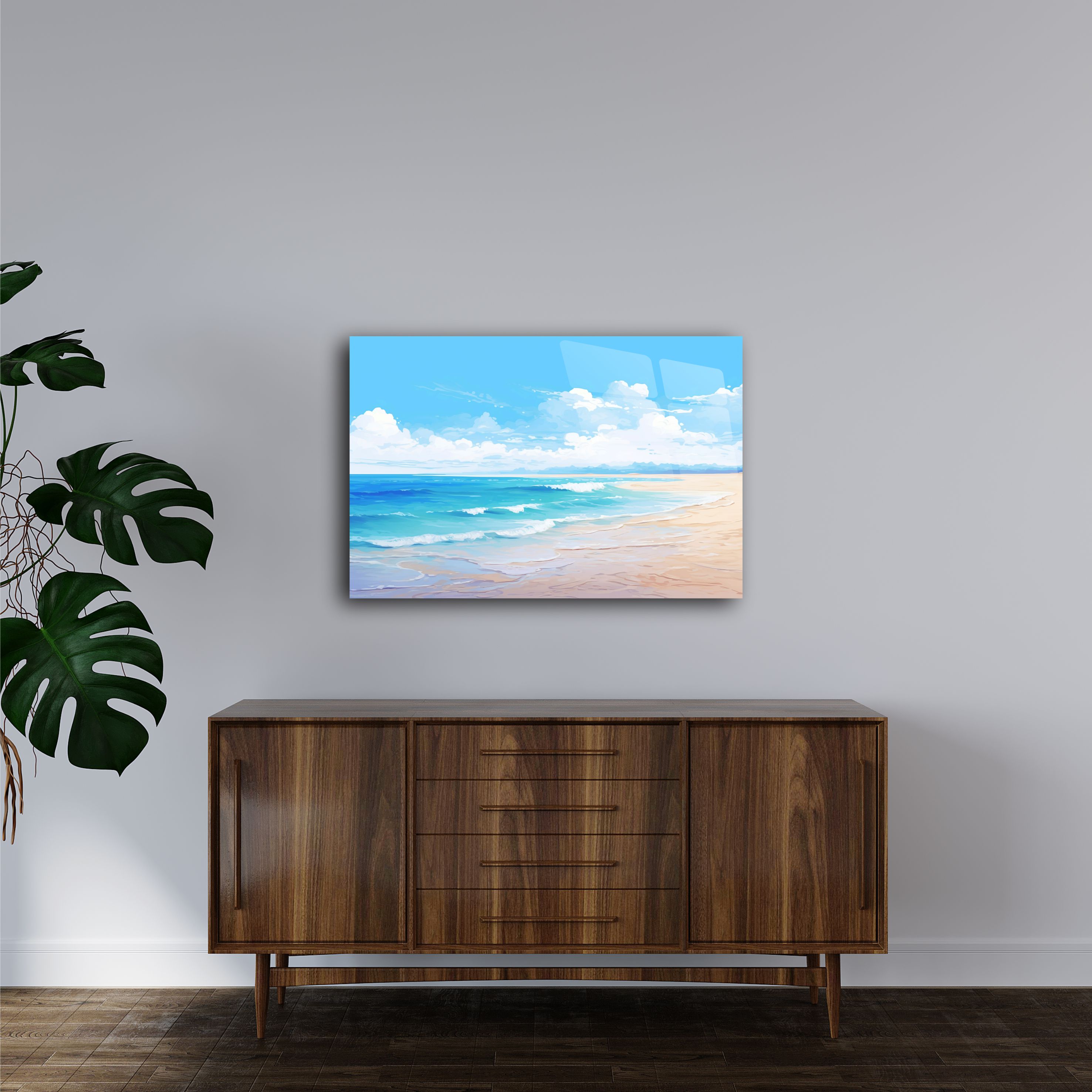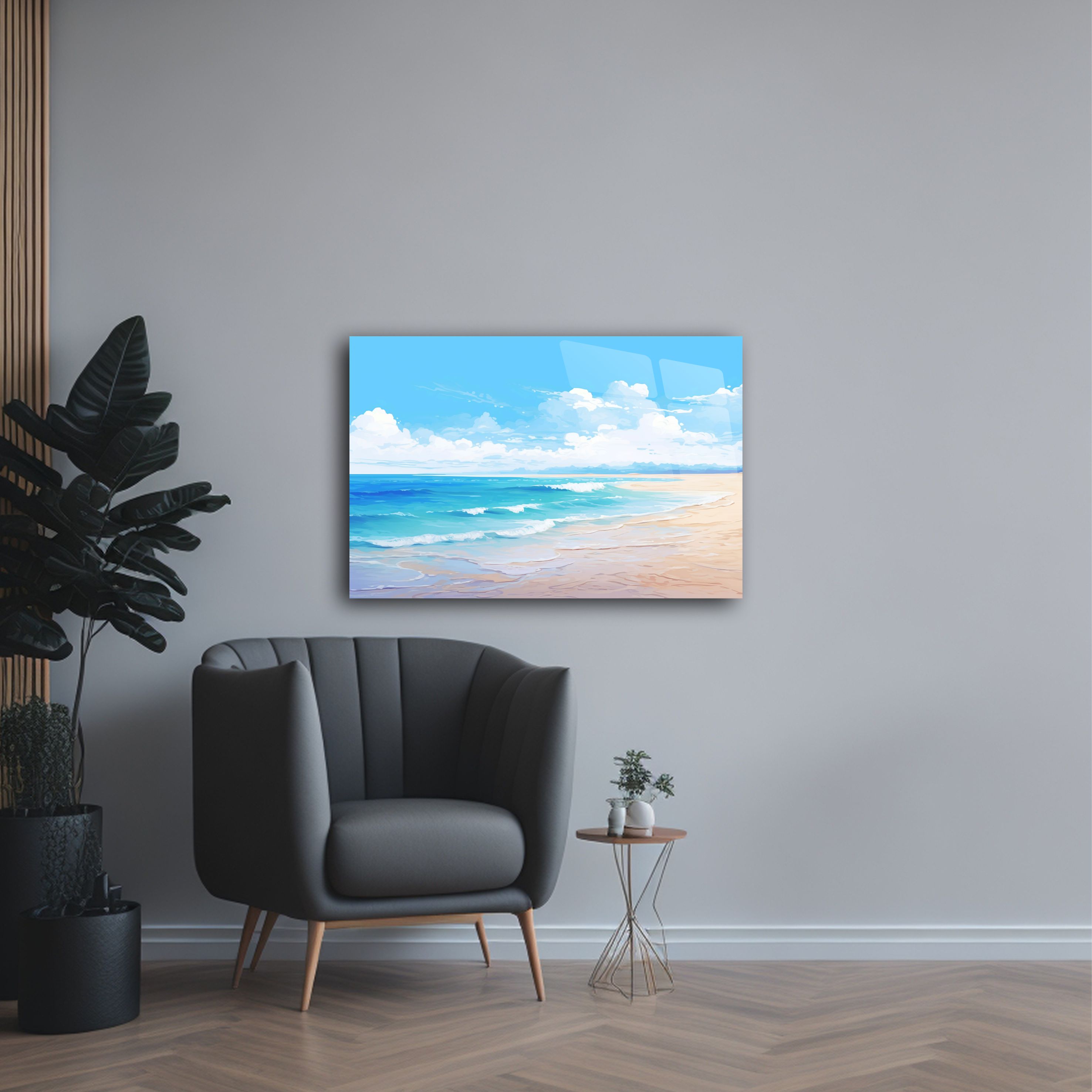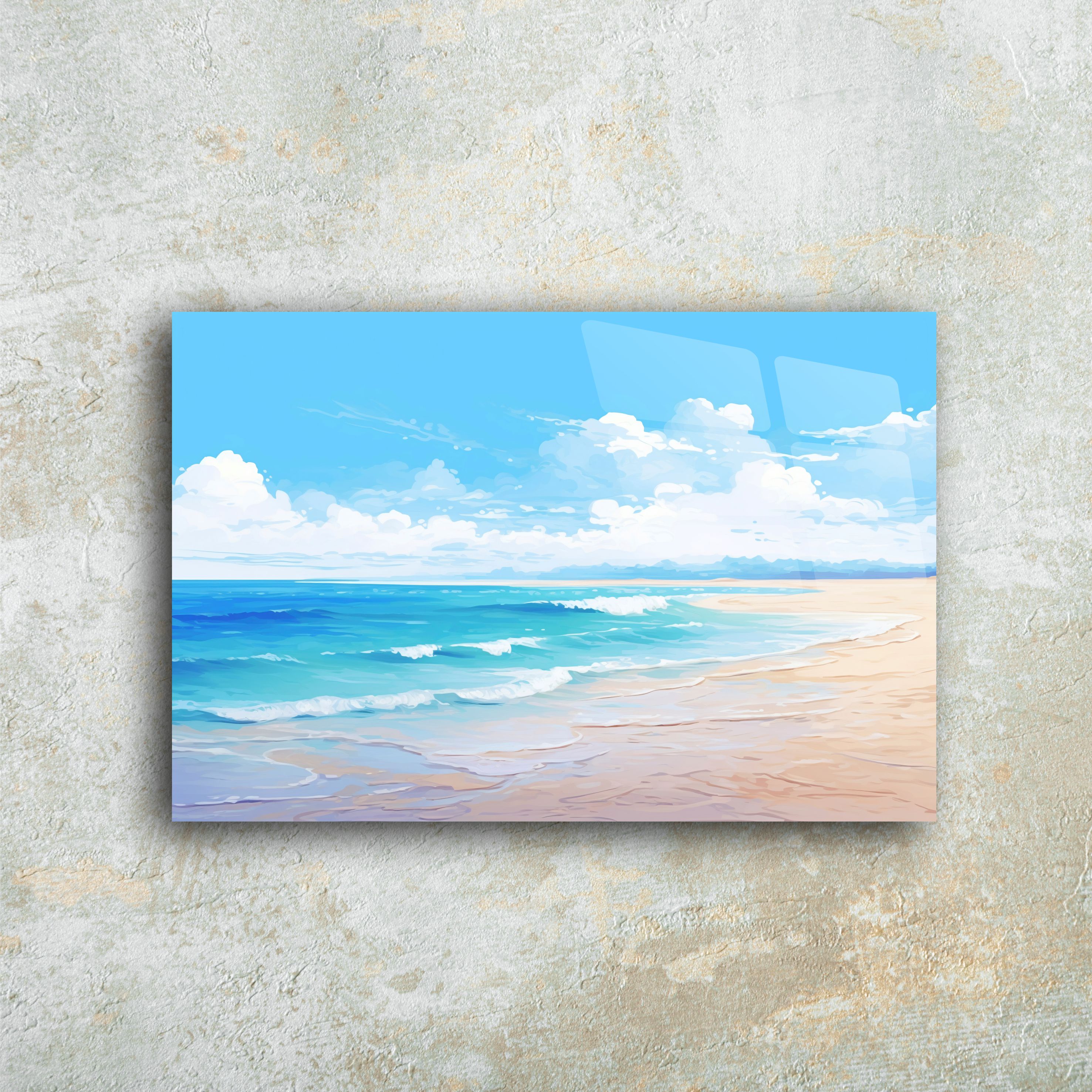 Deniz ve plajın huzur verici tonlarını evinize taşıyan bu cam tablo, estetik ve kaliteyi bir araya getiriyor. Minimalist bir tasarım anlayışıyla üretilen bu tablo, mekanınıza dinginlik ve zarafet katacak.