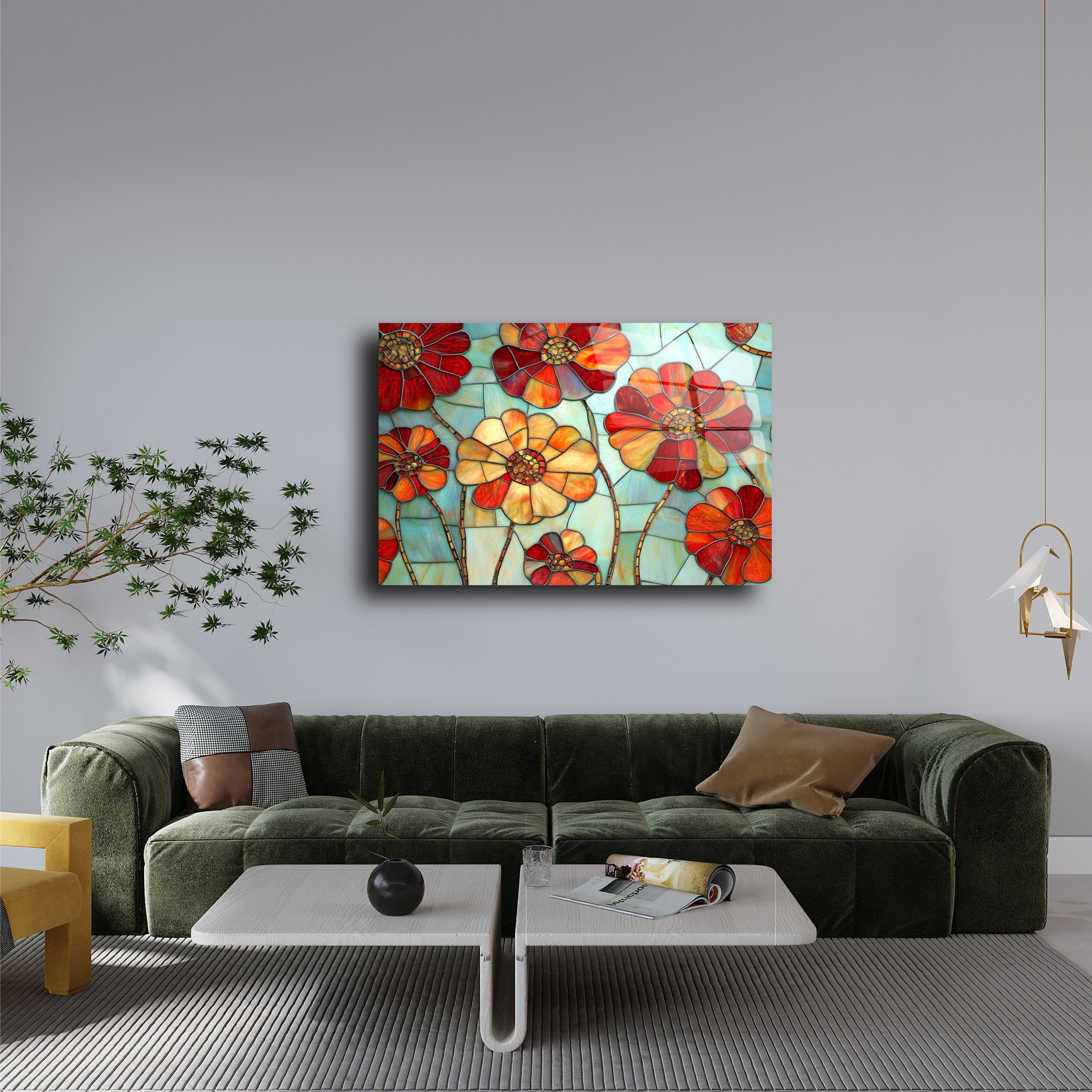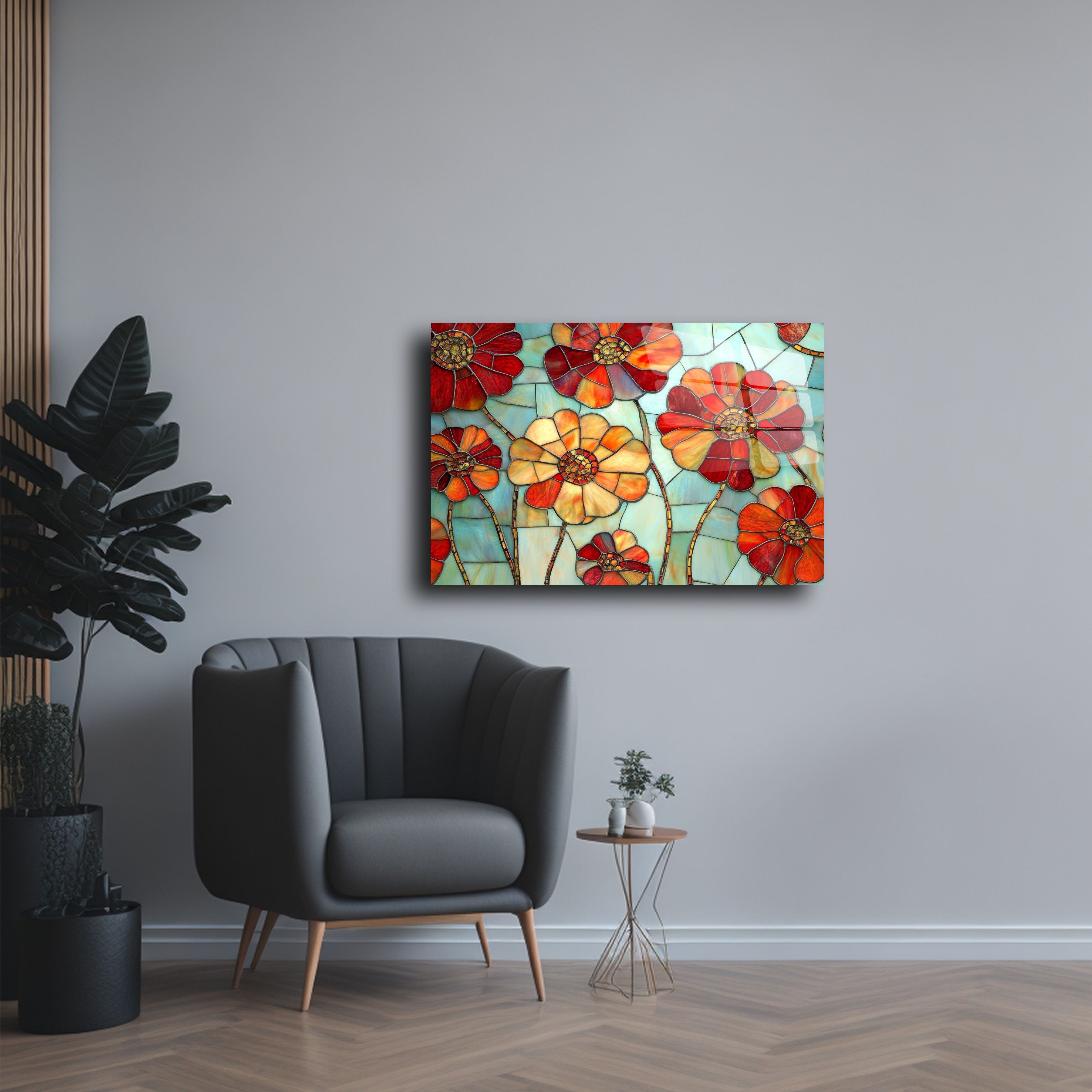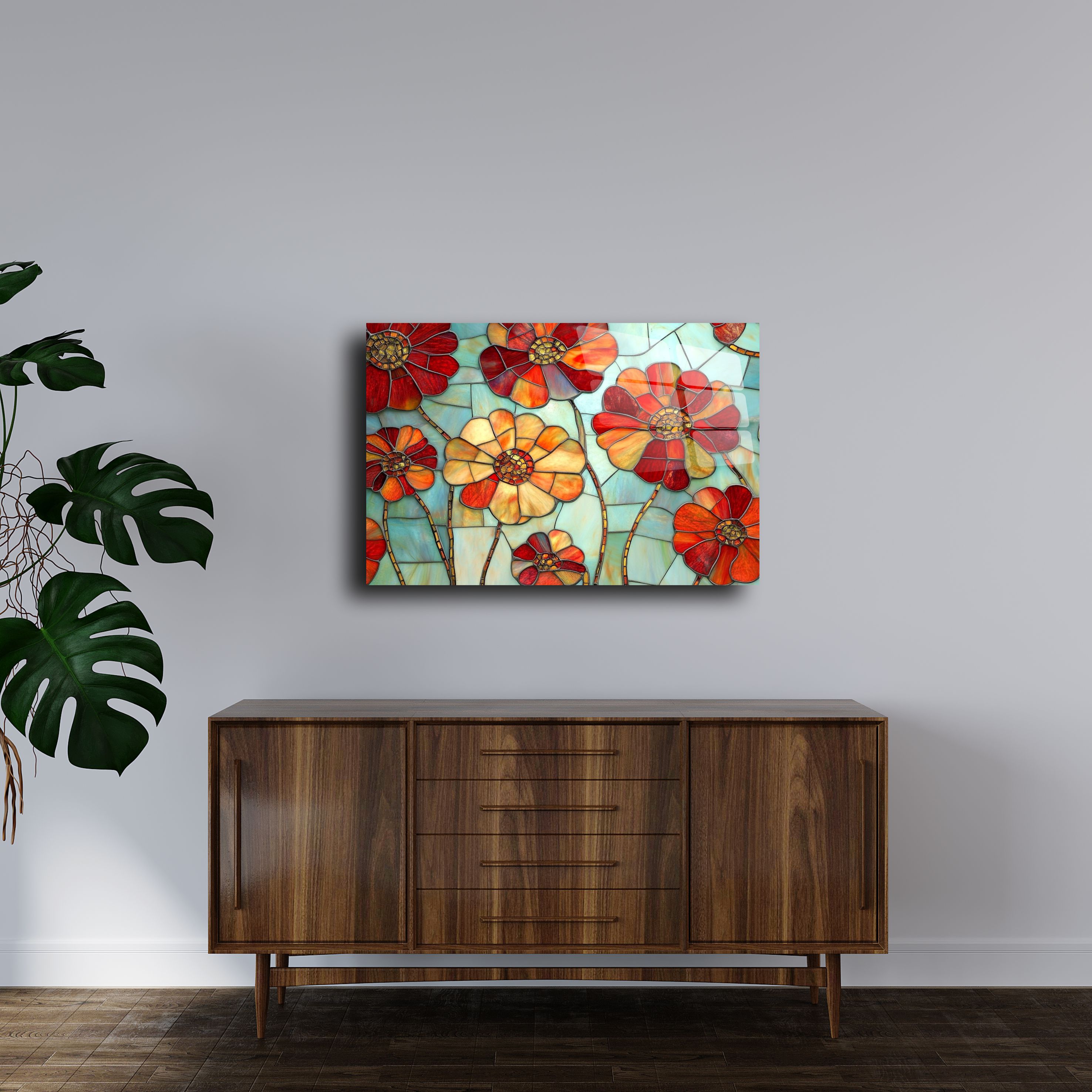 Evinizi ya da ofisinizi modern bir sanat dokunuşuyla süslemek ister misiniz? Renkli çiçek tasarımıyla öne çıkan bu cam tablo, hem estetik bir görsellik sunuyor hem de yaşam alanlarınıza taze bir enerji getiriyor. Parlak yüzeyi ve yüksek kaliteli UV baskı teknolojisi sayesinde renkler canlı ve dayanıklı bir görünüme sahiptir.