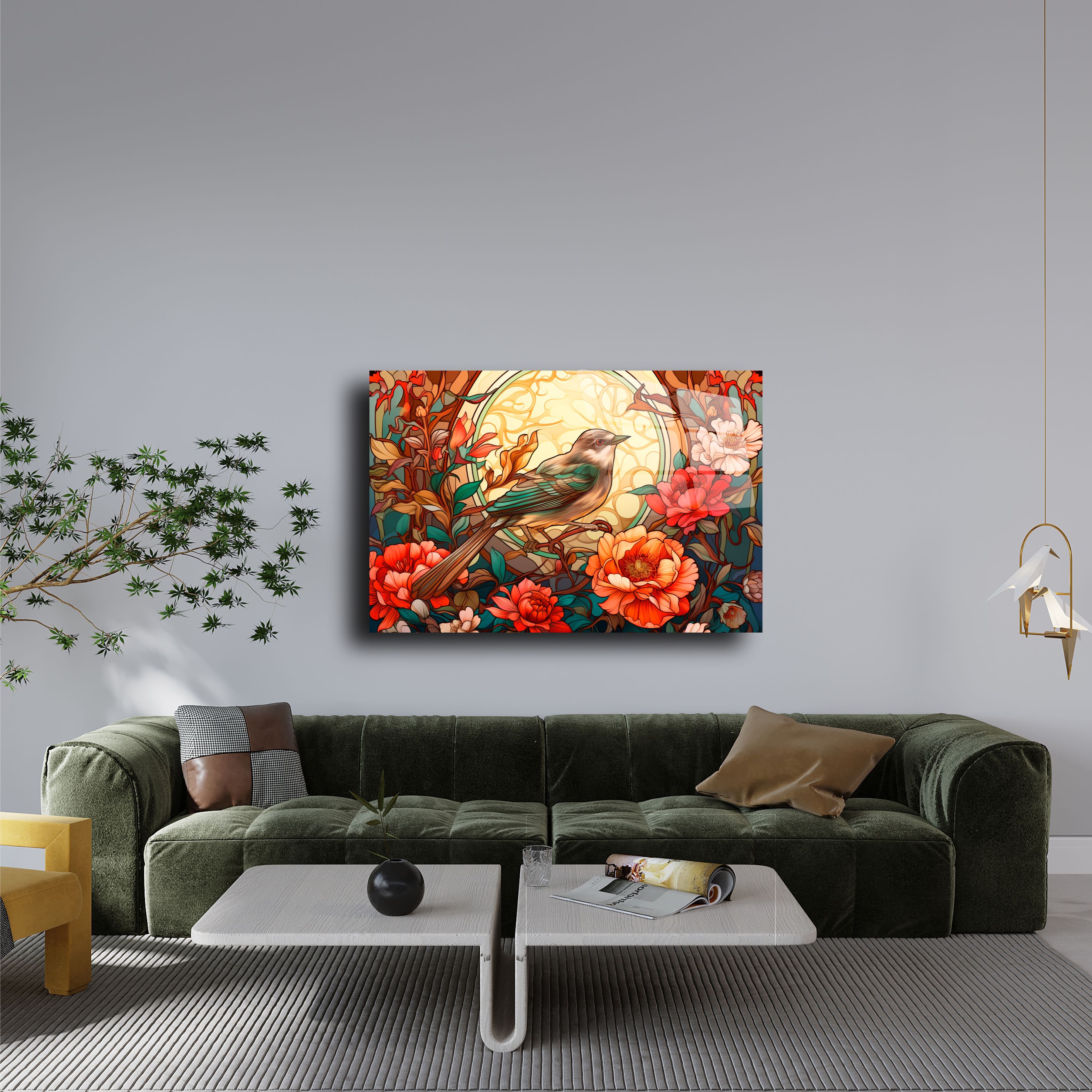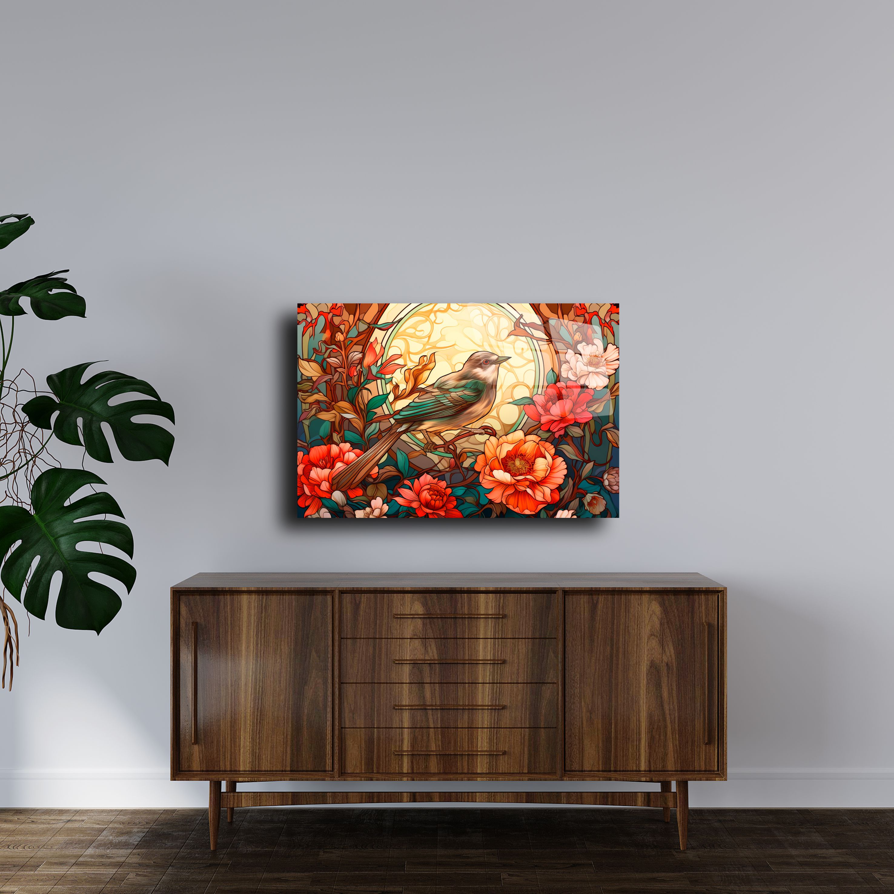 Evinize estetik bir dokunuş yapmaya hazır mısınız? Bu zarif cam tablo, doğanın en güzel unsurlarını modern bir tasarımla birleştiriyor. Renkli çiçekler ve ince detaylarla işlenmiş kuş figürü, mekana canlılık ve zarafet katıyor. Dayanıklı cam üzerine UV baskı teknolojisiyle üretilmiş bu tablo, yüksek çözünürlüklü bir görsellik sunar.