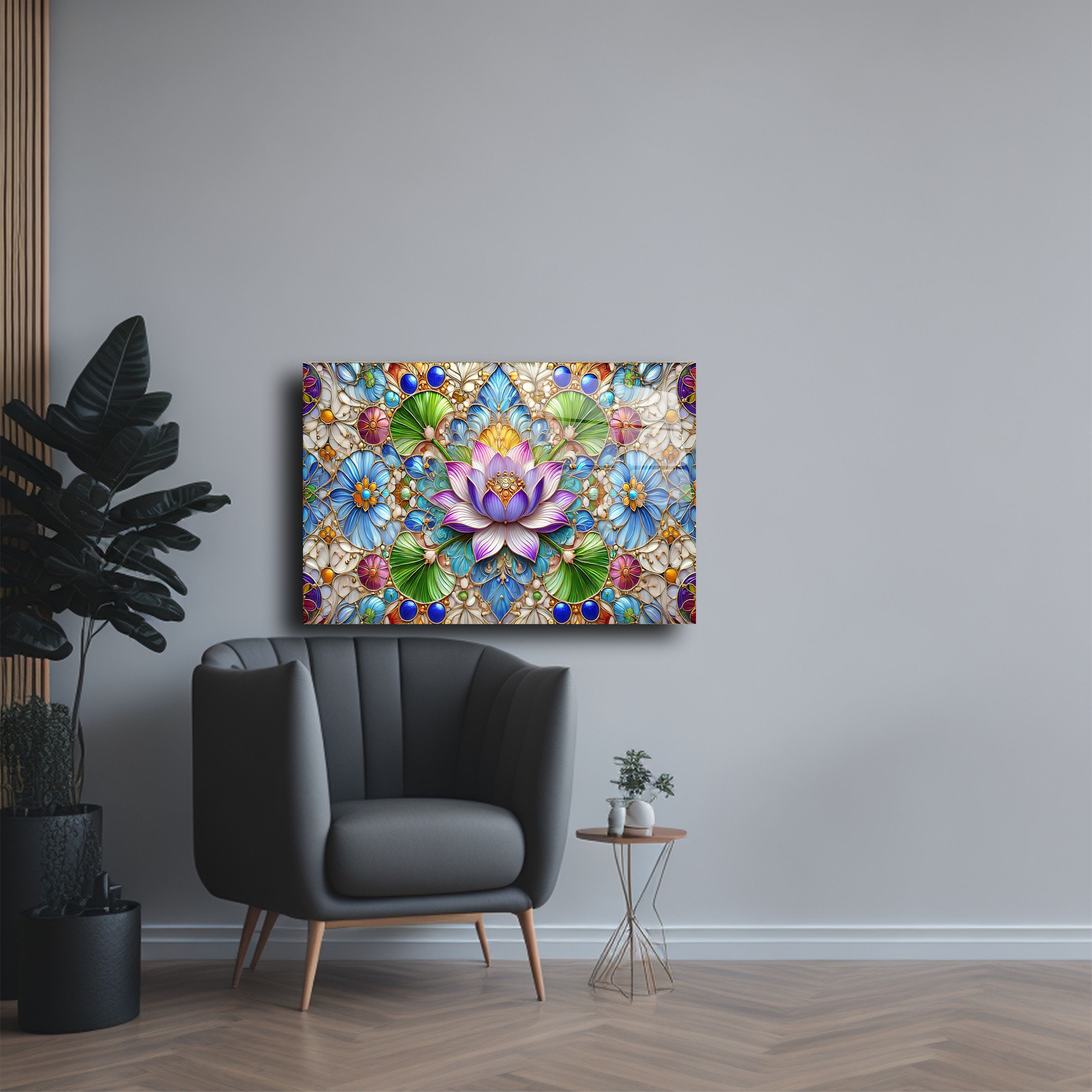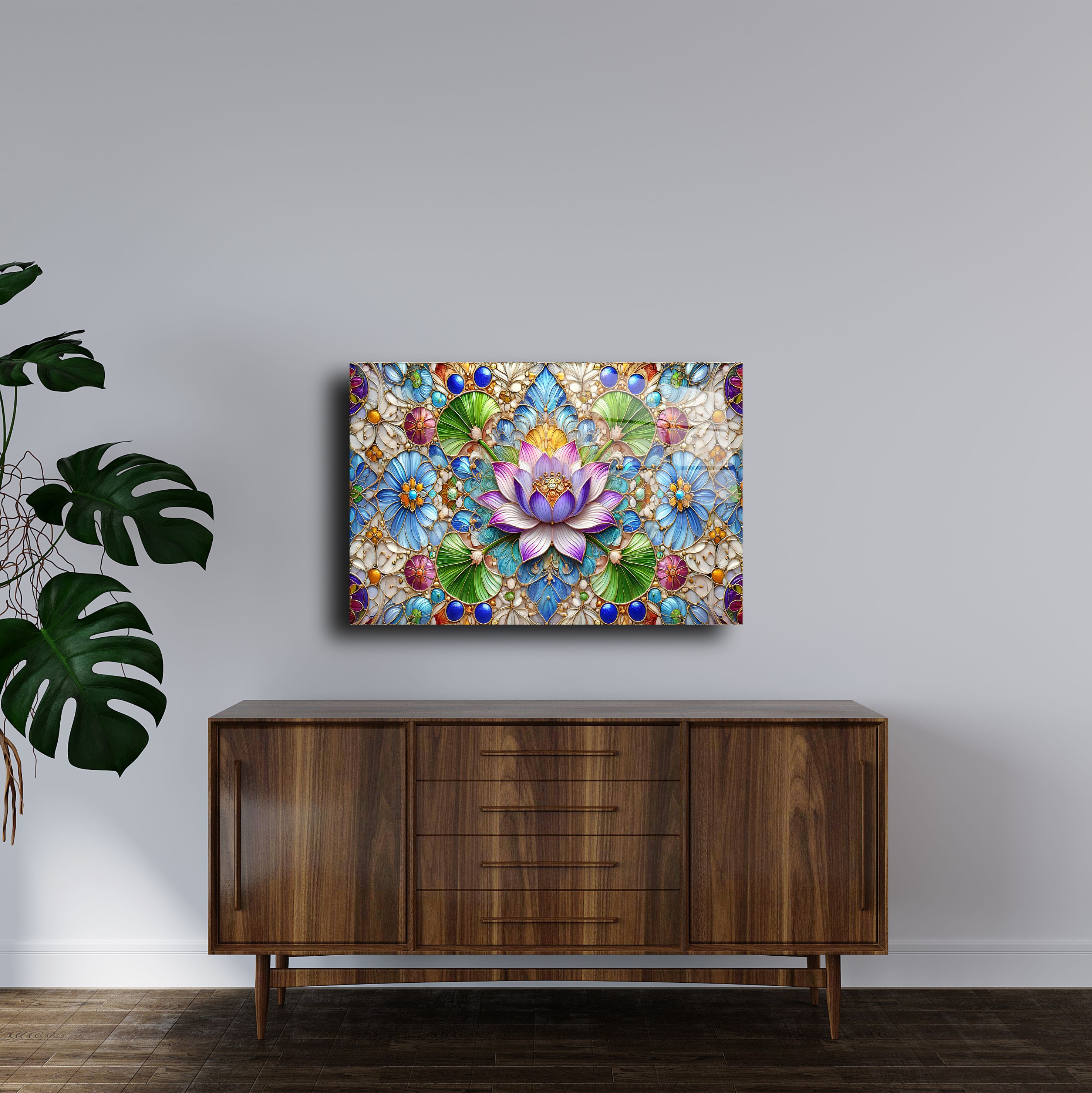 Lotus Çiçeği Cam Tablo" evinize zarafet ve renk katacak benzersiz bir dekoratif sanat eseridir. Renklerin uyumu ve detaylı mozaik tasarımıyla göz alıcı bir görünüme sahiptir. Dayanıklı cam yüzeyi sayesinde ışığı mükemmel şekilde yansıtır ve bulunduğu her ortamda dikkat çeker. Modern ev dekorasyonuna uyum sağlayan bu tablo, kaliteli baskı teknolojisi kullanılarak üretilmiştir ve uzun yıllar boyunca renklerini korur. Salon, oturma odası, yatak odası veya ofis gibi birçok alanda kullanabilirsiniz.