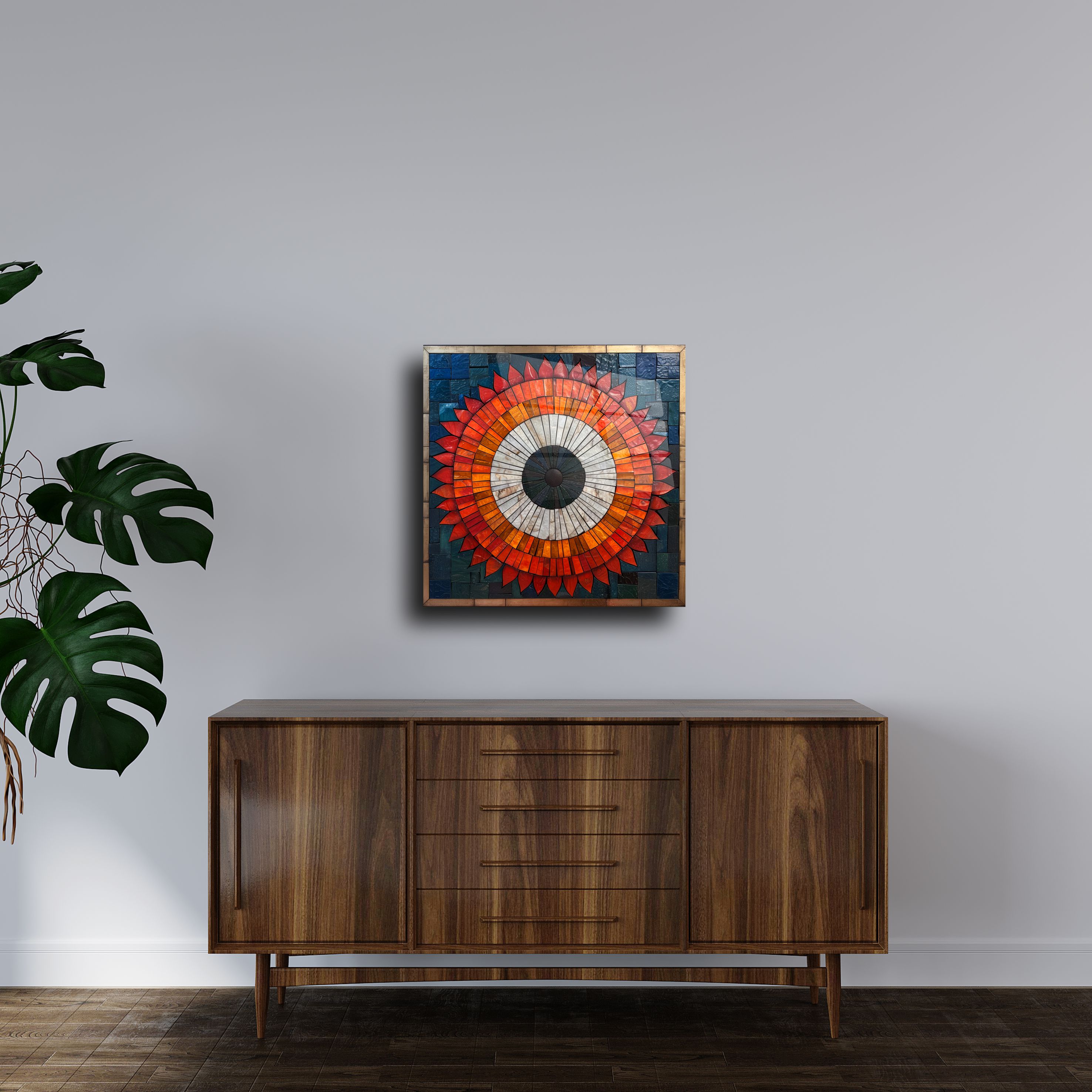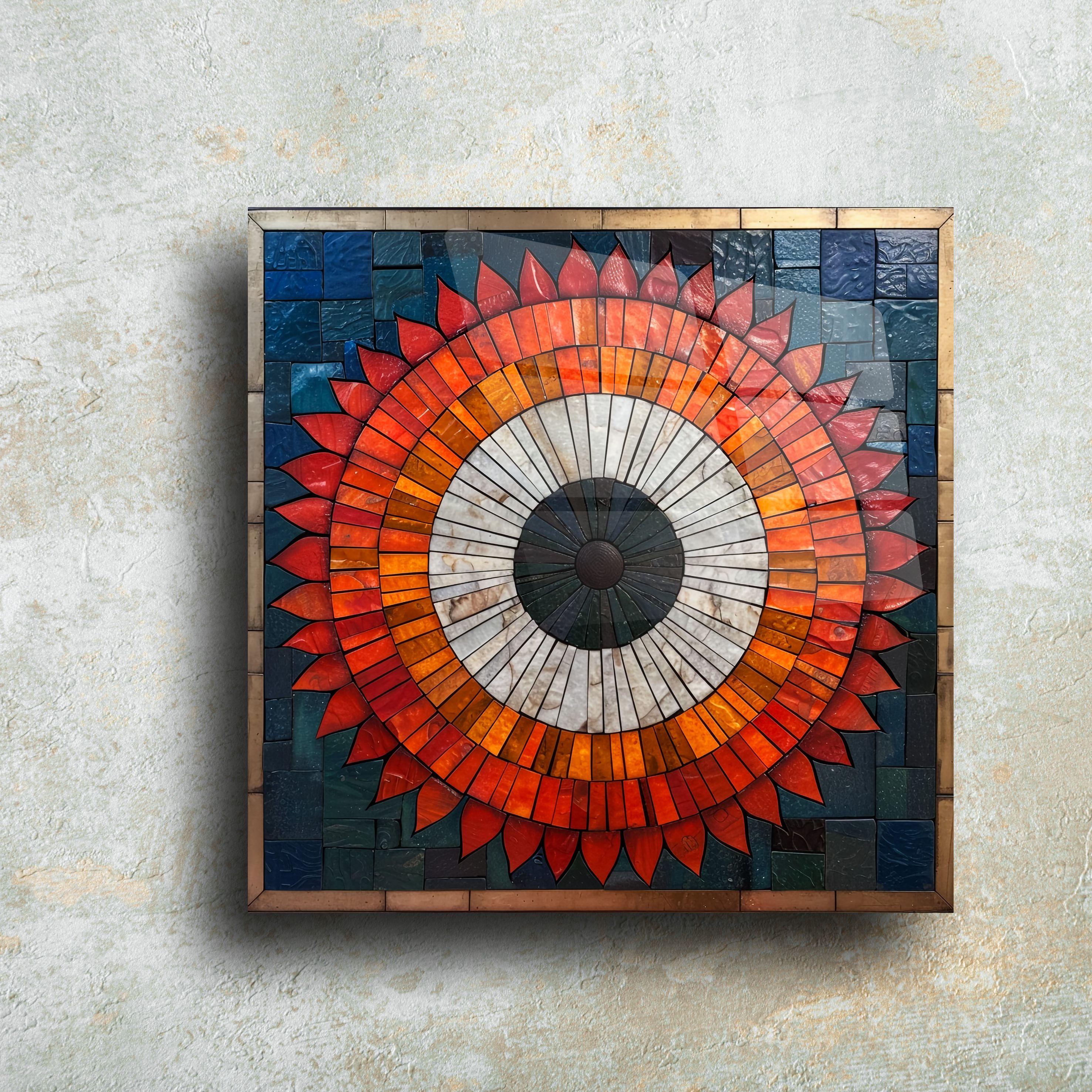 Renkli mozaik desenli göz şekli cam tablo, modern dekorasyon sevenler için tasarlanmıştır. El yapımı bu özel sanat eseri, kaliteli cam malzemeden üretilmiş olup dayanıklılığı ve estetik görünümüyle öne çıkar. Göz figüründen ilham alınarak tasarlanan bu tablo, detaylı ve canlı renkleriyle mekanınıza eşsiz bir karakter kazandırır.