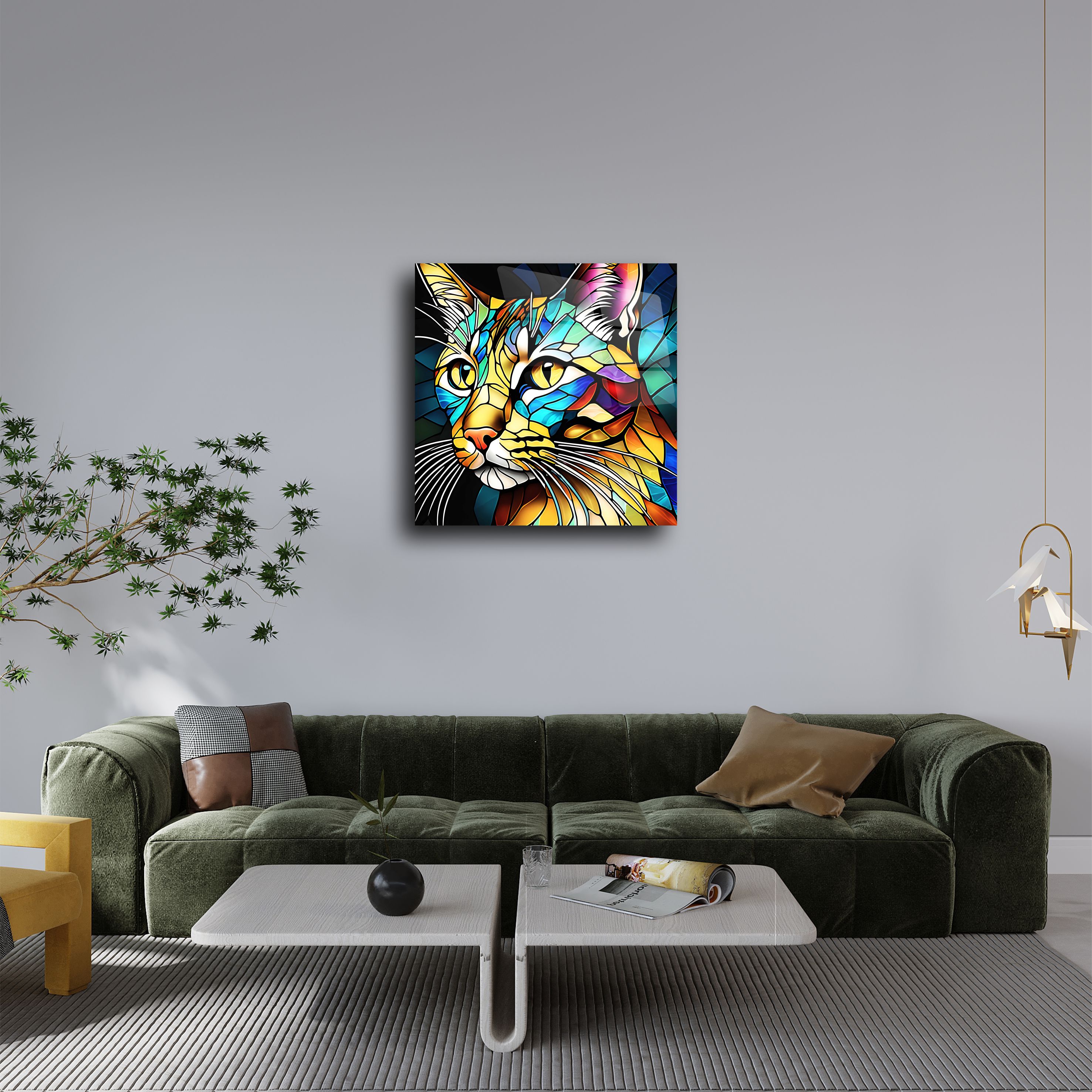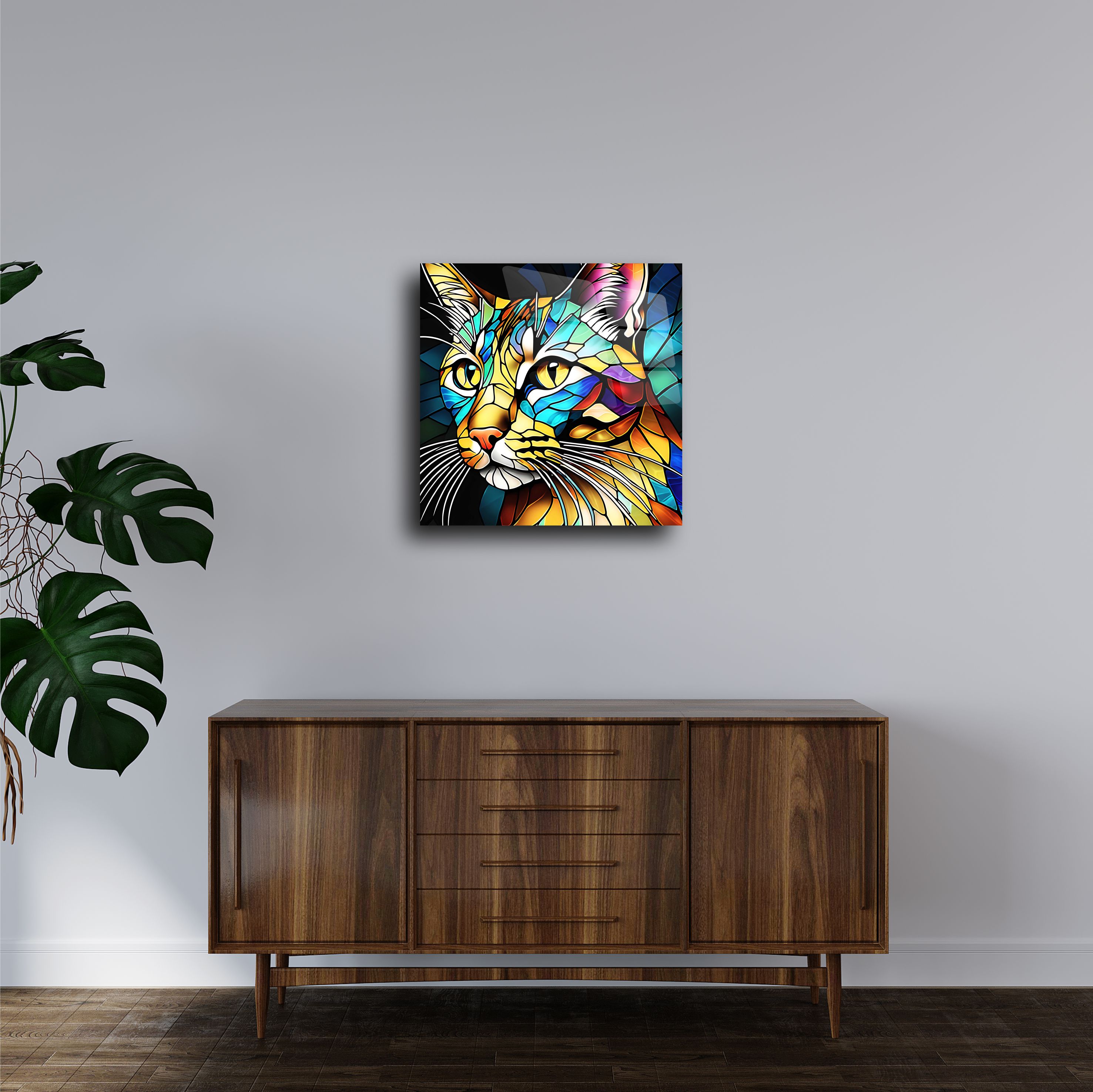 Bu renkli mozaik kedi cam tablo, ev dekorasyonunuza modern bir dokunuş katmak için tasarlandı. 4mm temperli cam üzerine UV baskı teknolojisiyle üretilmiştir ve parlak, canlı renkler sunar. Kolay montaj için aparatlarla birlikte gelir ve oturma odası, yatak odası veya ofis için mükemmel bir seçimdir. Sanat severler ve kedi tutkunları için ideal bir hediye seçeneğidir.