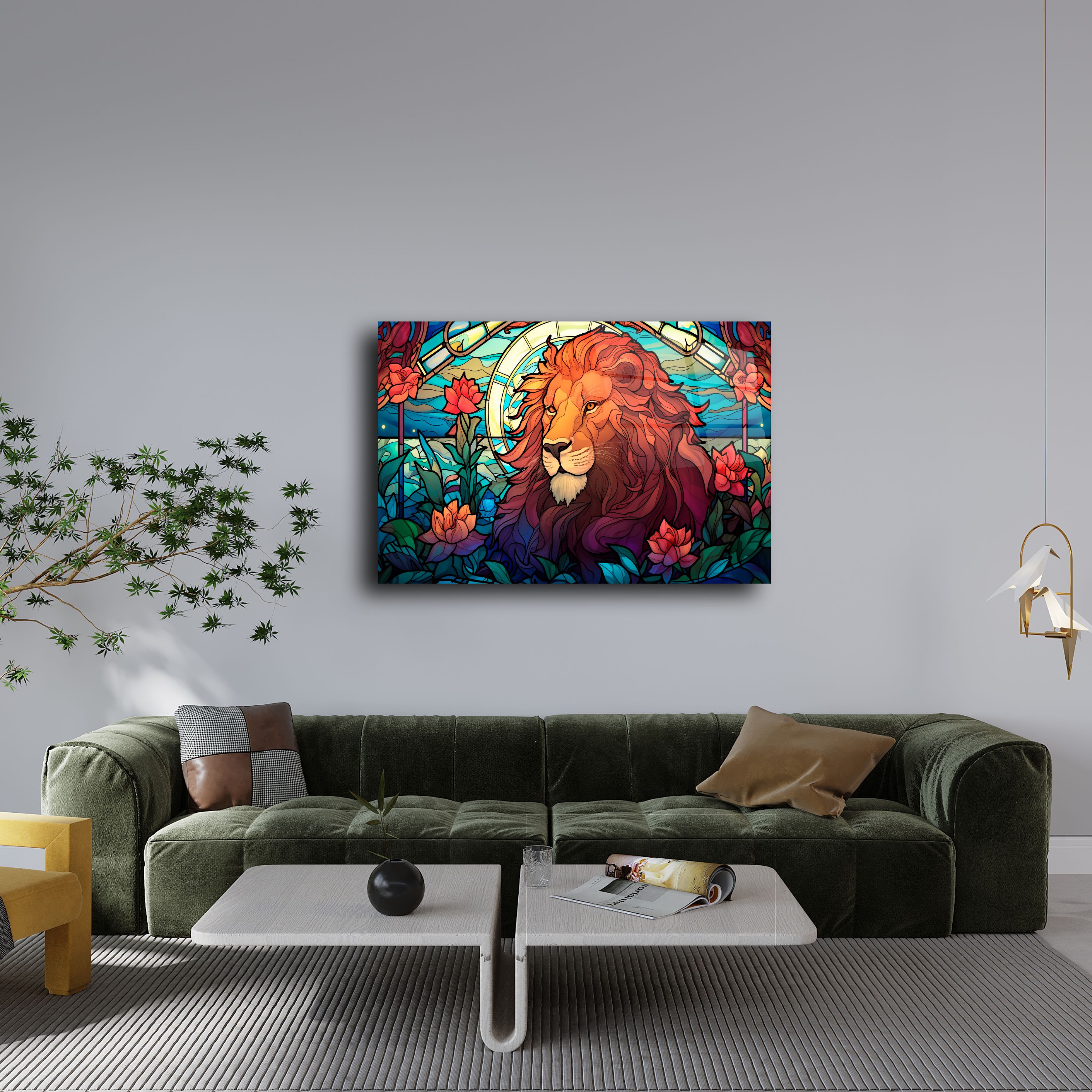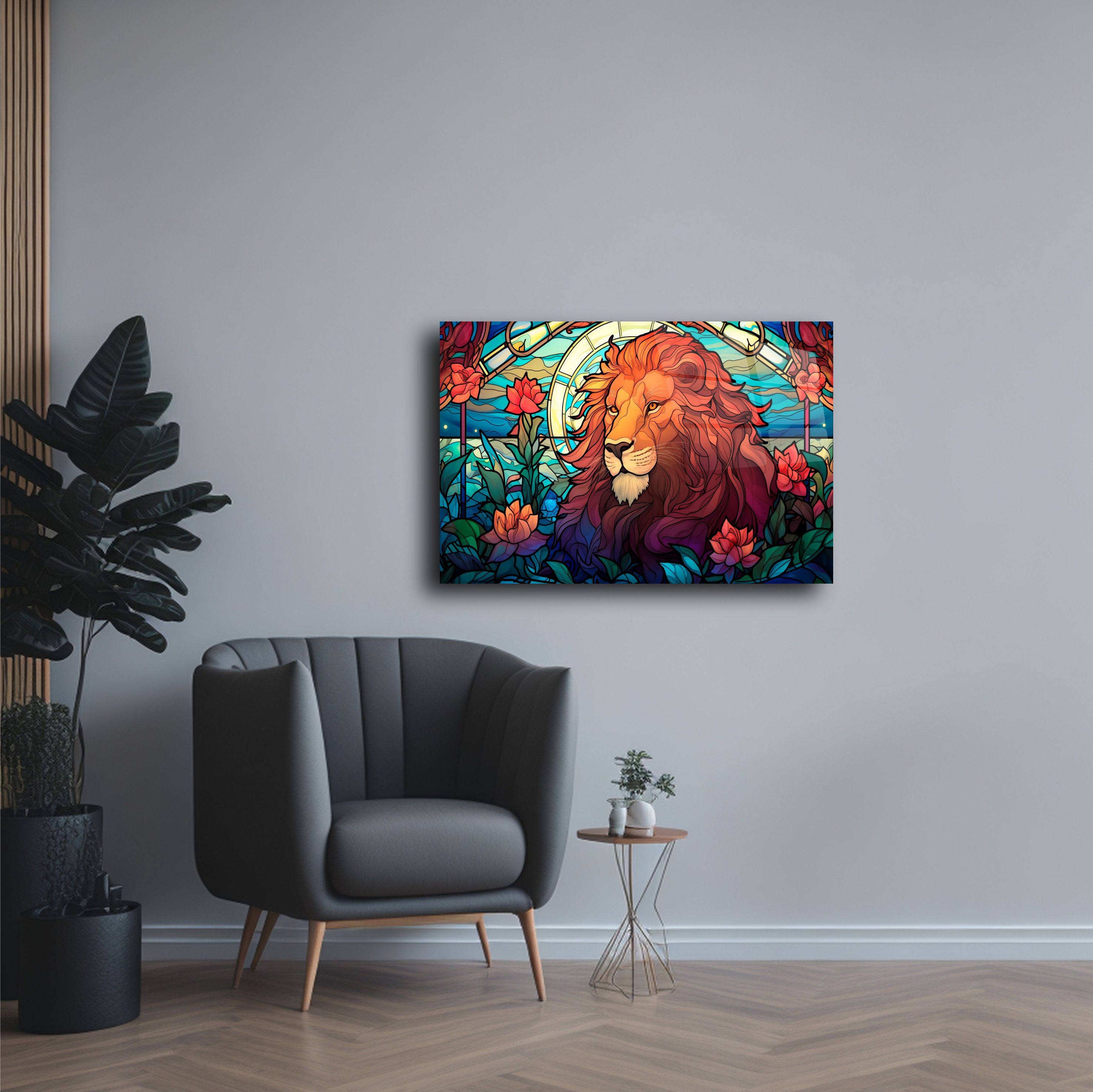 Evinize doğanın ve sanatın büyüleyici uyumunu taşıyan bu aslan temalı cam tablo, modern dekorasyon anlayışınıza zarif bir katkı sunar. Vitray sanatının eşsiz zarafetiyle tasarlanan tablo, detaylı renk geçişleri ve benzersiz desenleriyle odanıza sofistike bir atmosfer katacaktır.