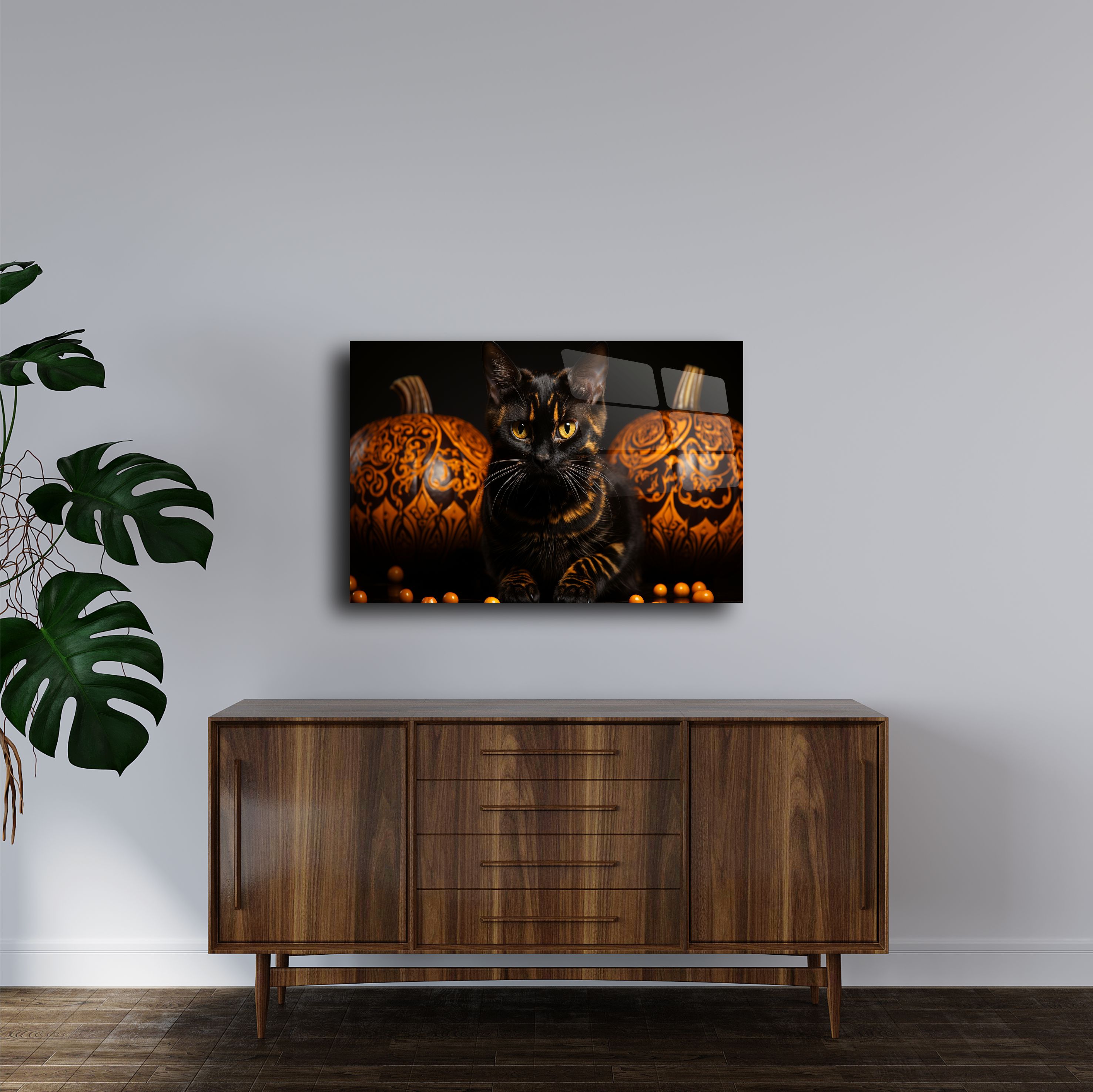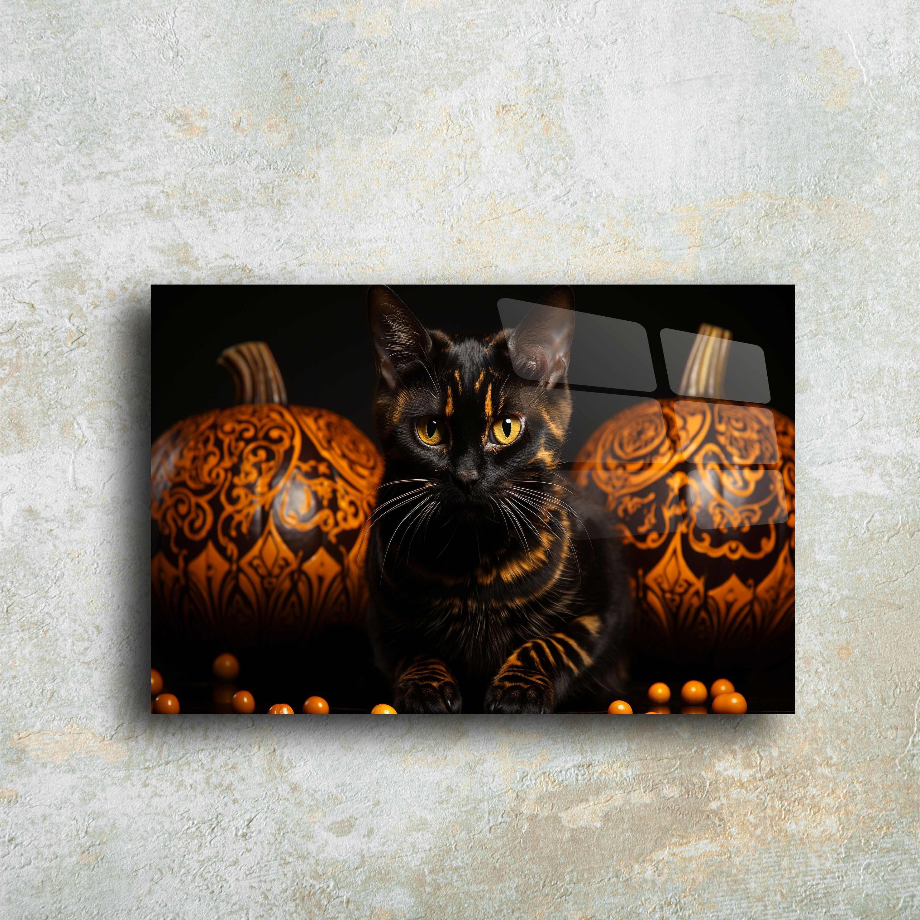 Bu şık cam tablo, siyah kedi ve kabak temalı tasarımıyla dikkat çekiyor. 4 mm temperli cam üzerine UV baskı teknolojisiyle üretilmiştir ve hem dayanıklı hem de dekoratif bir seçimdir. Modern ve sevimli detaylarıyla evinizde veya ofisinizde sıcak bir atmosfer yaratır.