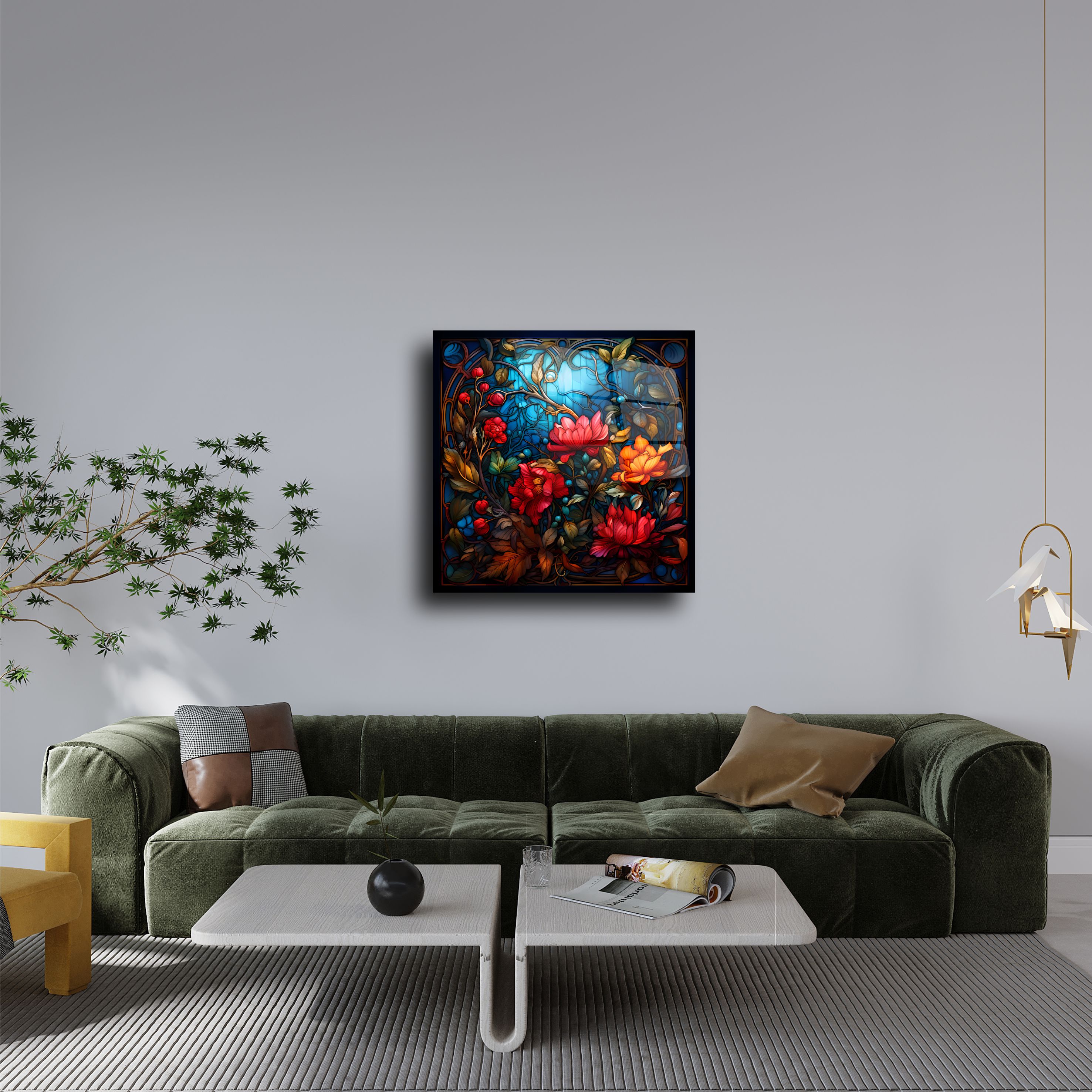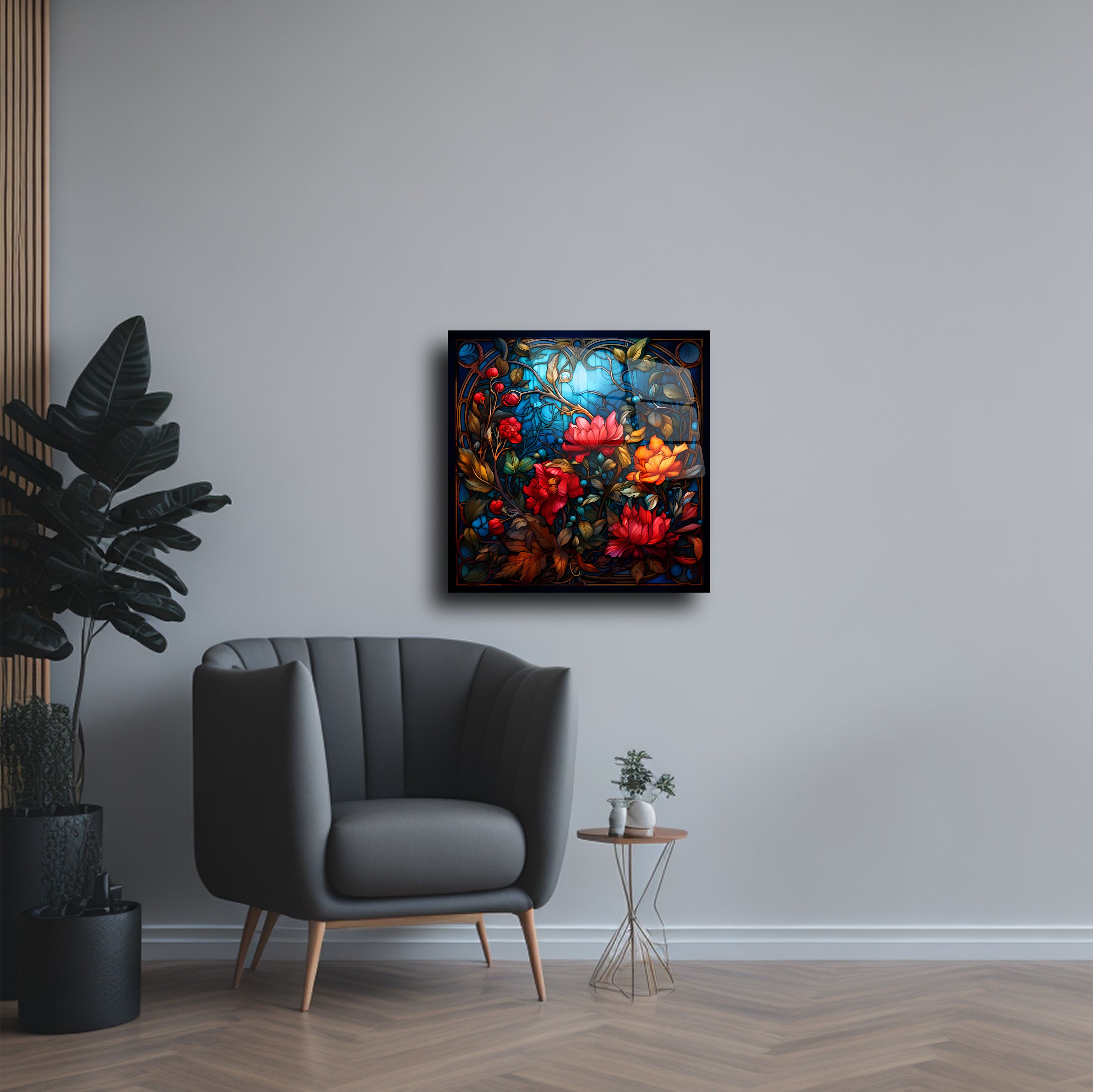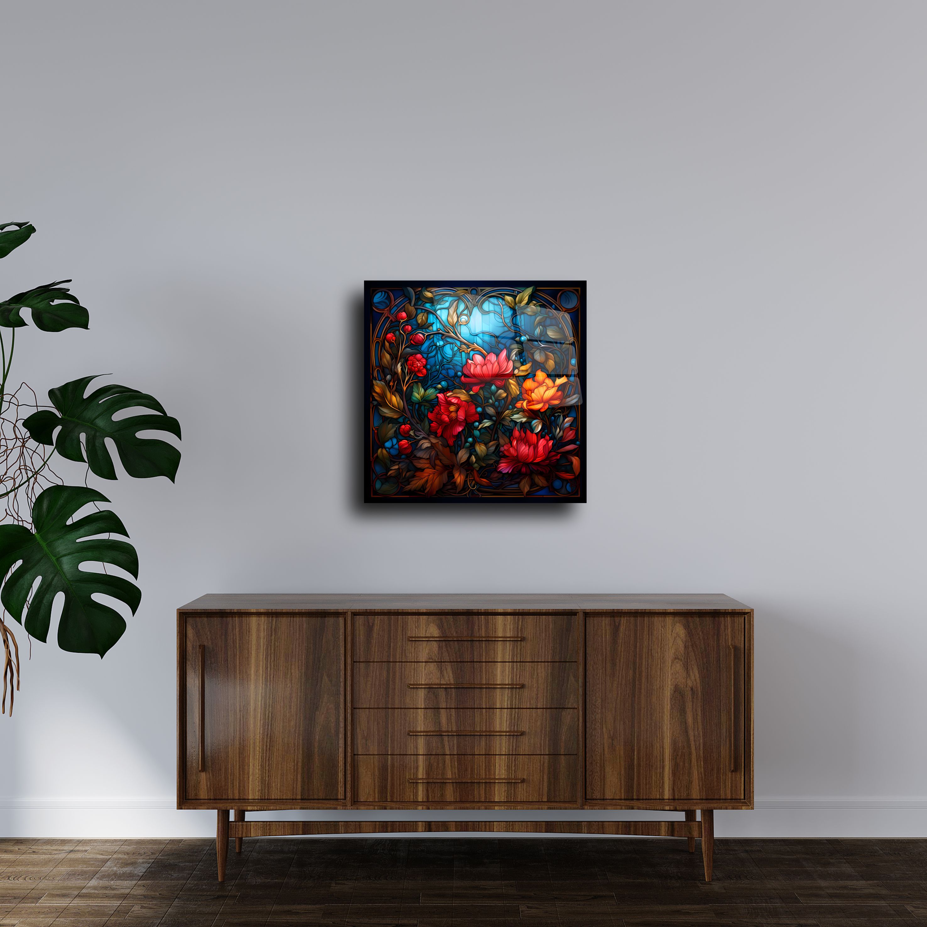 Evinize zarif bir dokunuş katmak için bu çiçek desenli renkli cam tabloyu tercih edin. Şık tasarımı ve canlı renkleriyle her odanın havasını anında değiştirecek bu sanat eseri, özel baskı teknolojisiyle cam üzerine detaylı olarak işlenmiştir. Göz alıcı vitray stili ve modern çizgilerle tasarlanmış bu ürün, hem geleneksel hem de çağdaş dekorasyon tarzlarına mükemmel bir şekilde uyum sağlar.