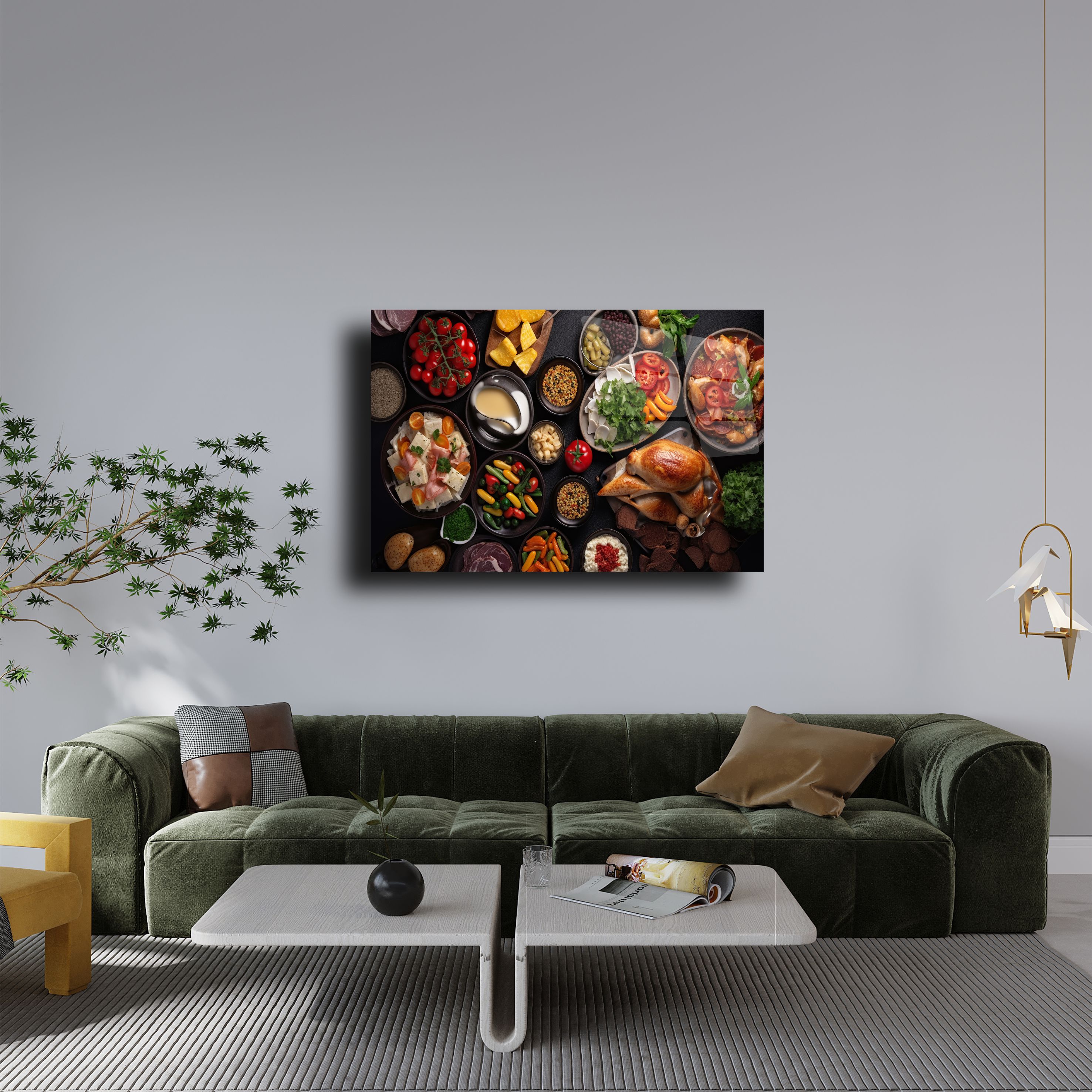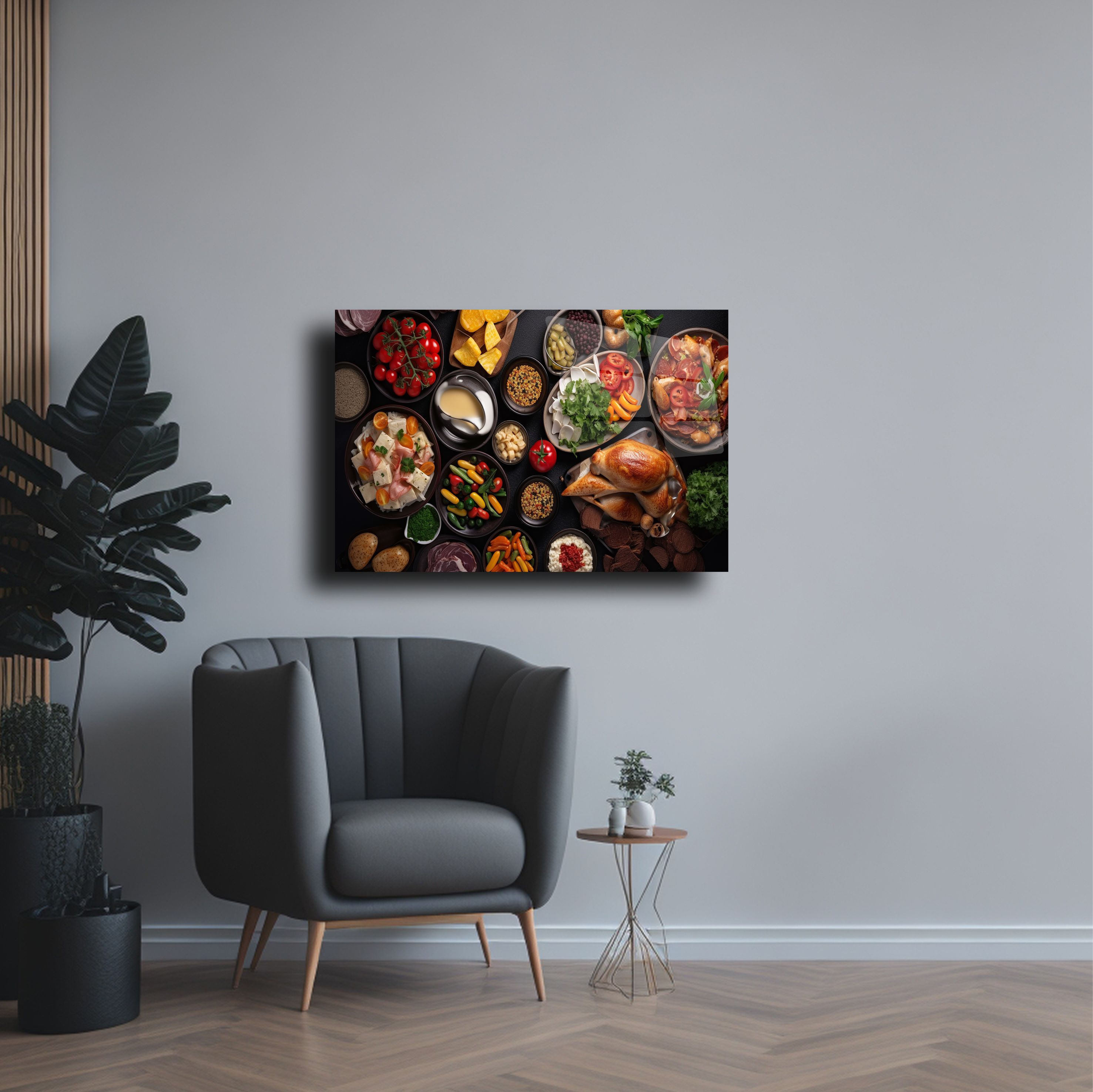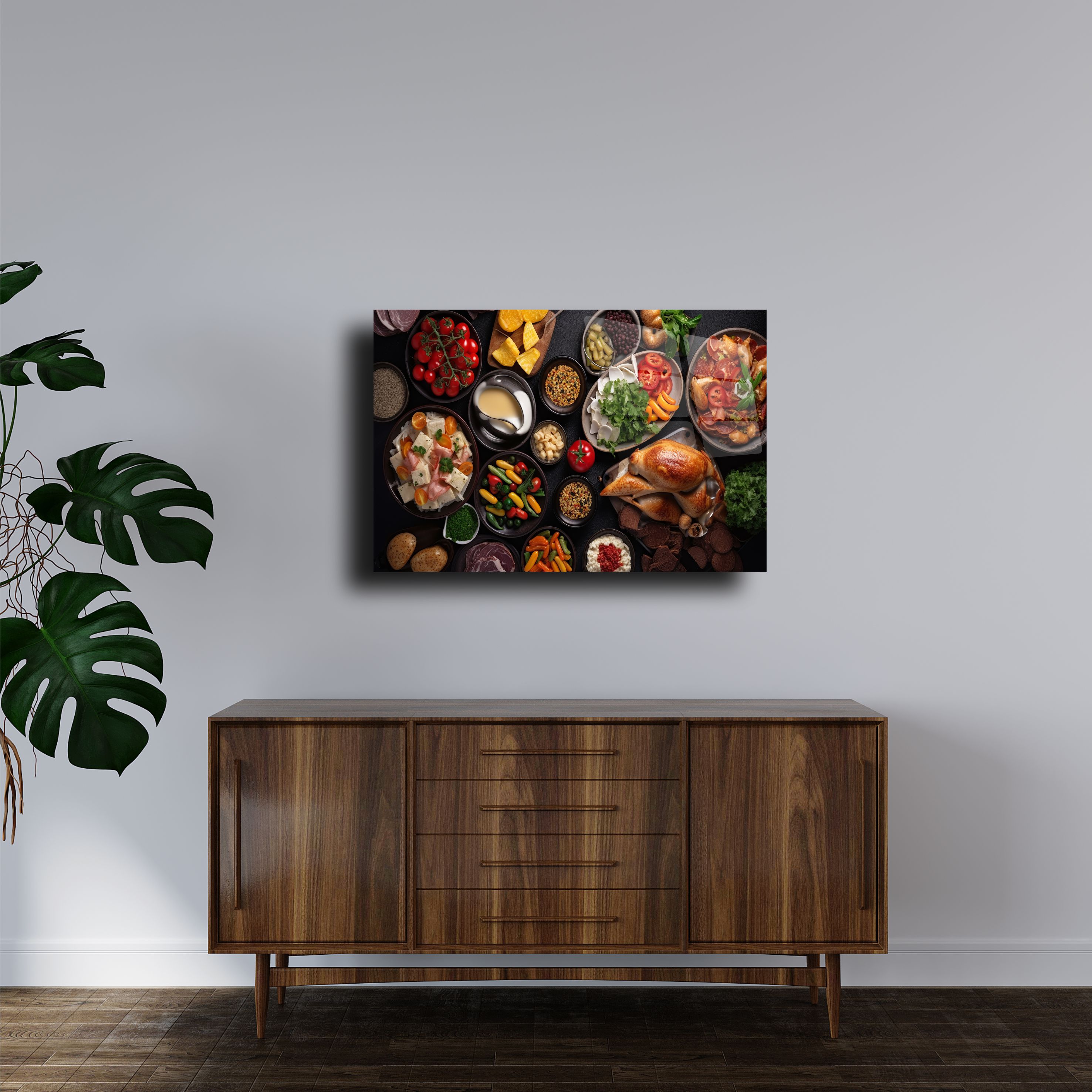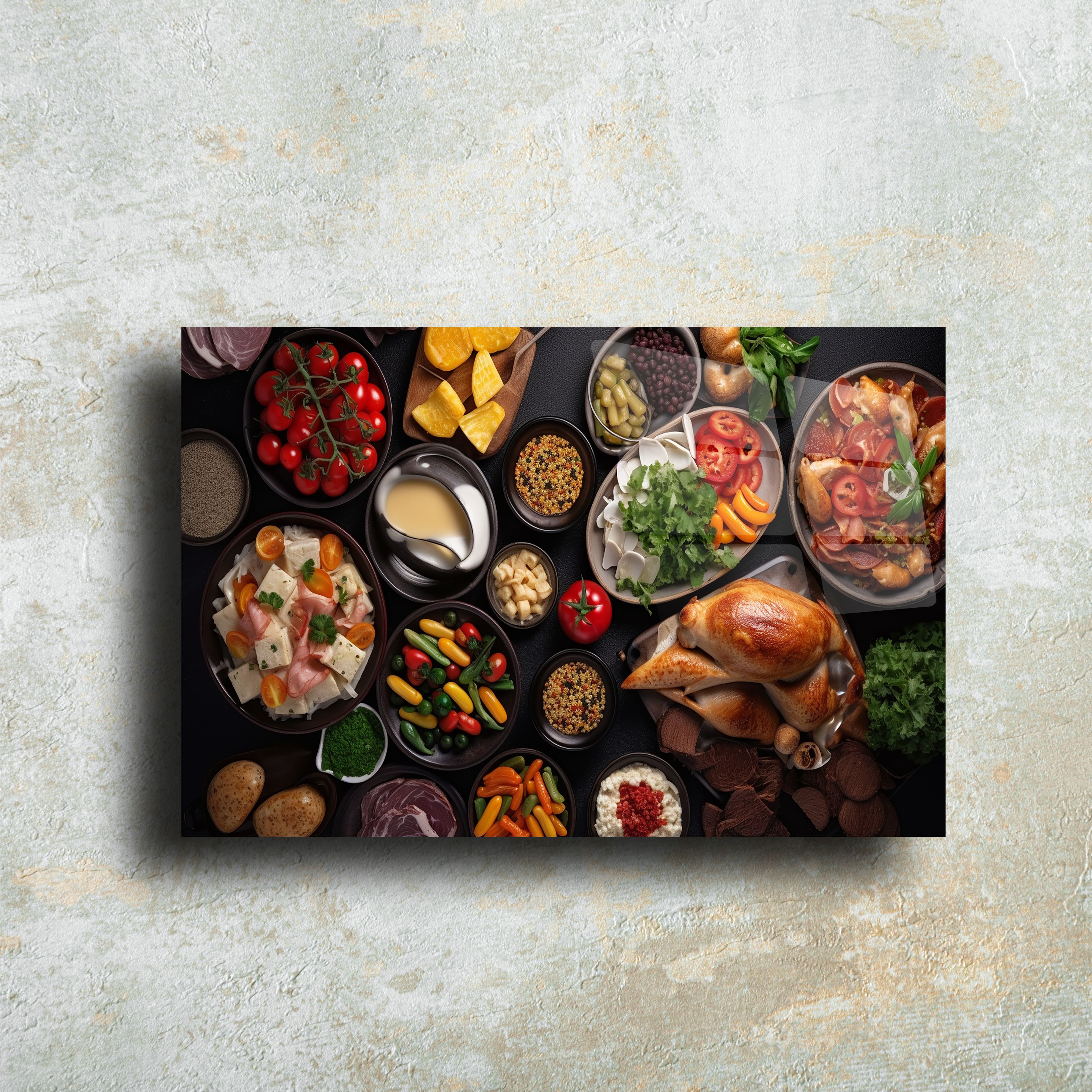 Yemek ve dekor severler için özel olarak tasarlanmış, zengin sofra temalı bu cam tablo, 4mm temperli cam üzerine UV baskı teknolojisi ile üretilmiştir. Canlı renkleri ve detaylı görselleriyle sofraların cazibesini evinize taşıyın. Mutfak, yemek odası ya da restoran dekorasyonuna şıklık katmak için mükemmel bir seçenek. Kolay montaj için gerekli tüm aparatlarla birlikte gönderilmektedir.